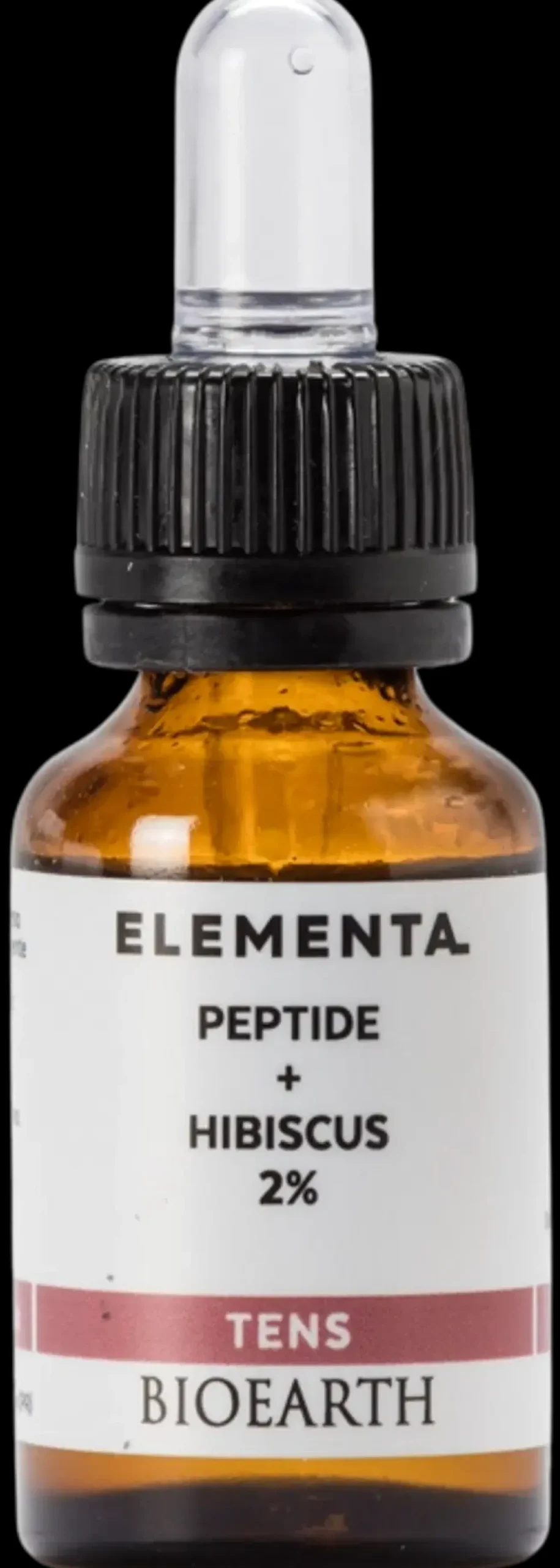 Bioearth Elementa Peptide + Hibiscus 2% boosteri ikääntyvälle iholle parantaa ihon kimmoisuutta ja sävyä. Peptiditiiviste ja hibiskuksen siemenuute 2% muodostavat tehohoitotiivisteen, joka auttaa parantamaan ihon kimmoisuutta ja häivyttää ikääntymisen merkkejä. Tiivisteen aktiivipohjana on luomu aloe vera ja luonnollisen käymisprosessin lopputuloksena syntyvä hyaluronihappoliuos.