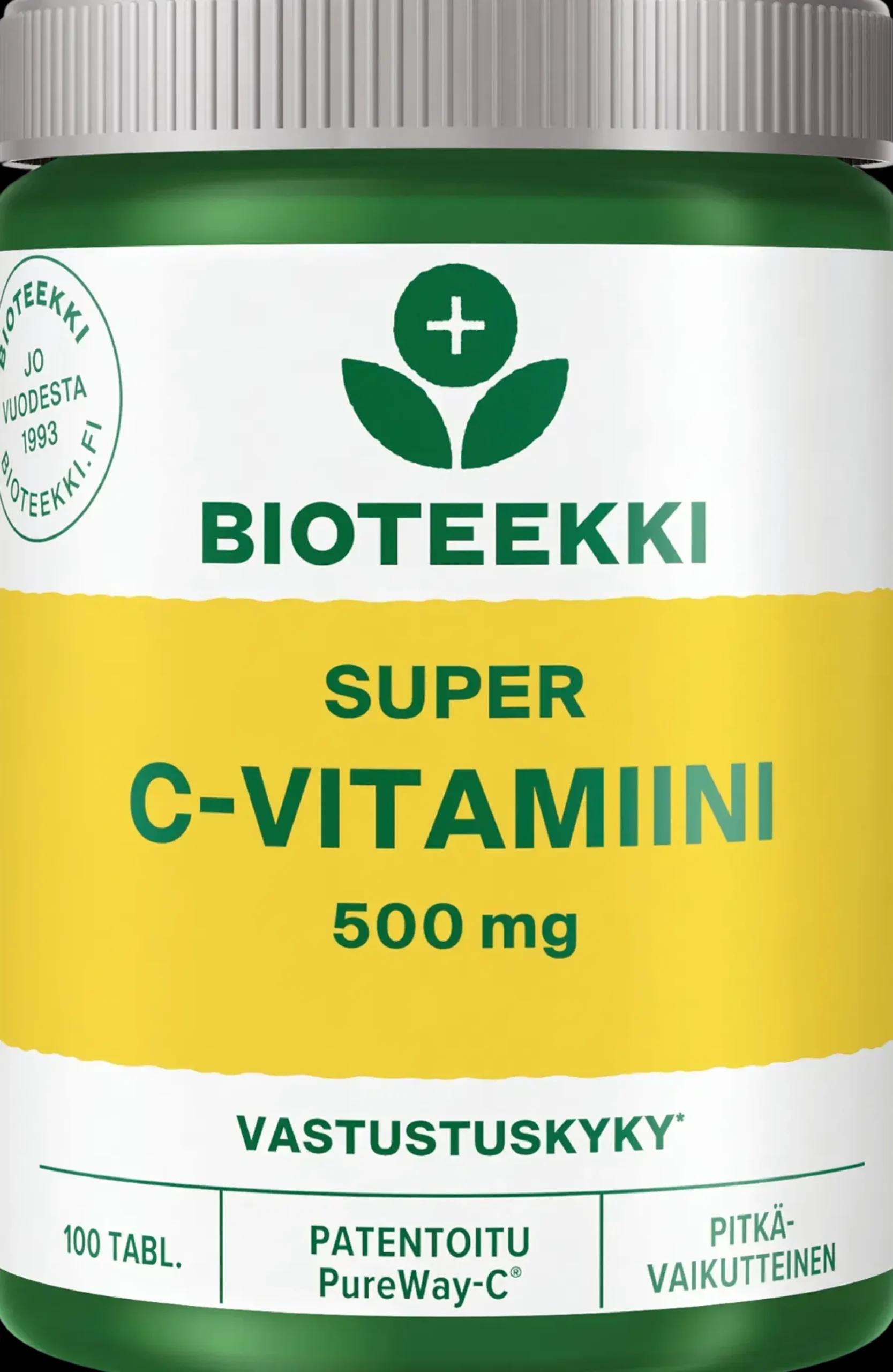 Super C-vitamiini sisältää ainutlaatuista C-vitamiiniyhdistettä, jossa on mukana rasvaliukoisia osasia ja bioflavonoideja. Tämä monipuolinen koostumus parantaa C-vitamiinin biologista hyväksikäytettävyyttä, nopeuttaen sen imeytymistä ja pidentäen sen pysymistä elimistössä. Ei sisällä gluteenipitoisen viljan ainesosia. Laktoositon, maidoton, liivatteeton.
