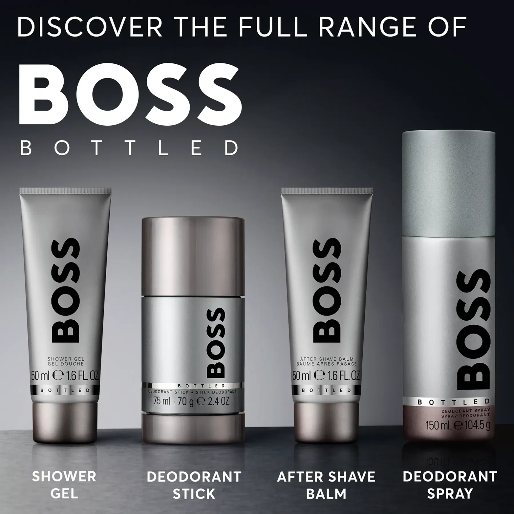 BOSS-mies on valmis menestymään – kilpailukykyinen, motivoitunut ja kunnianhimoinen. Hänen päivittäiset valmistautumisrituaalinsa ovat olennainen osa hänen henkilökohtaista menestyksen tavoittelua, ja BOSS Bottled Deodorant Spray -suihkeesta on tullut vakiintunut osa hänen jokapäiväistä aseistustaan. Itsevarma ja nykyaikainen, ikoninen BOSS Bottled -tuoksu on BOSSin kiteytys tuoksuun. Eleganssia ja tyyliä yhdistävä BOSS Bottled -deodorantti on suunniteltu modernia miestä ajatellen.