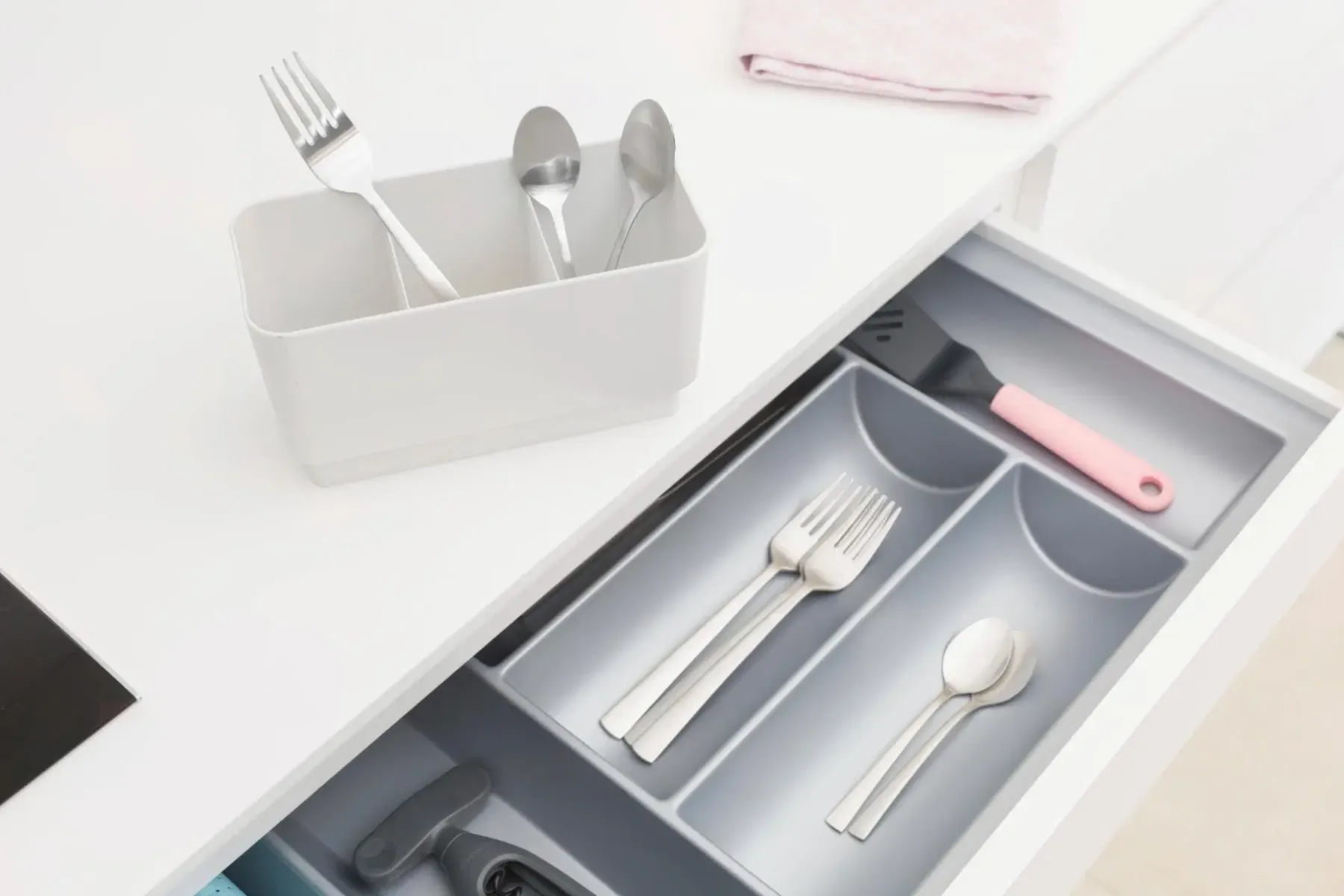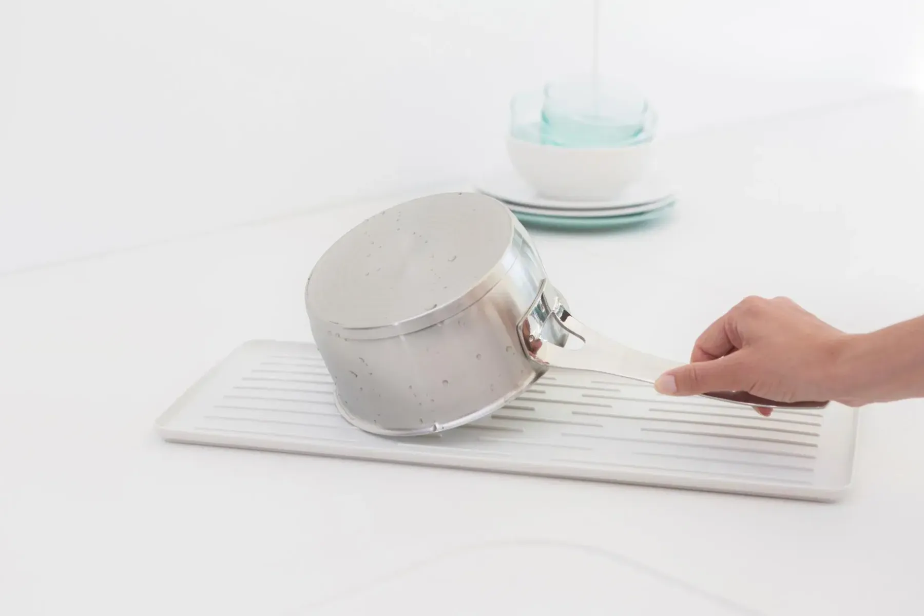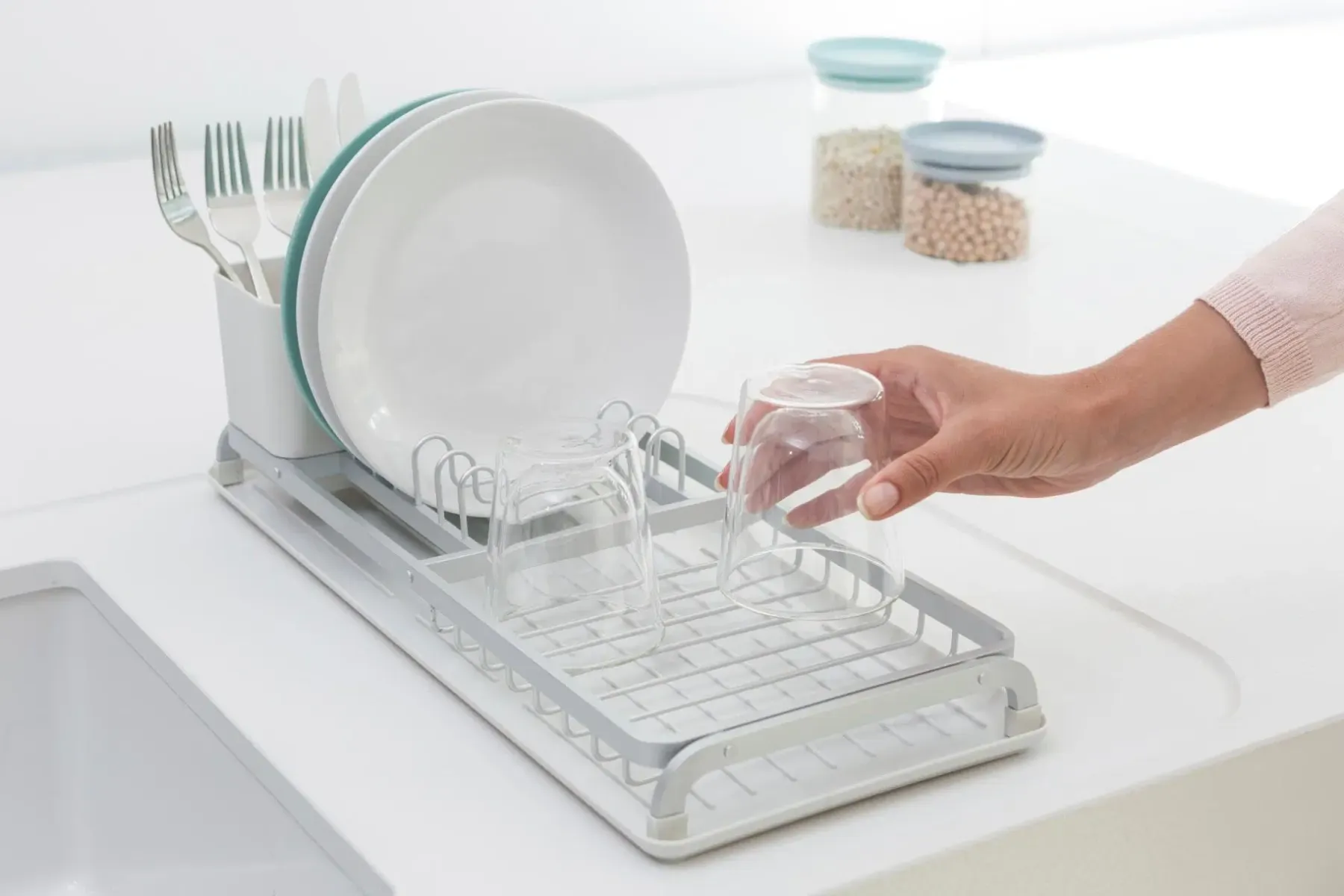 Keittiötasotilan säästäjä. Pieni keittiö? Älä tuhlaa tasotilaa kuivaamiseen, vaan käytä tätä Brabantia SinkSide kompaktia astiankuivaustelinettä. Se on suunniteltu rajallinen keittiötasotila mielessä ja siihen mahtuu kuivumaan 5 lautasta, siinä on irrotettava aterinkori sekä tasainen osa laseille ja muille. Erinomainen pieni teline. Kompakti malli – tilaa viidelle lautaselle, tasainen osa sekä aterinkori.Kuiva työtaso – suljetut reunat pitävät veden valutusalustalla.Helppo kuivaus – kuviot ruode valutusalustalla mahdollistaa ilmavirran.Siirrä aterimesi pois – irrotettavalla aterinkorilla.Monikäyttöinen – telinettä ja valutusalustaa voidaan käyttää yhdessä tai erikseen.Ei liukumista, ei naarmuuntumista – telineessä on silikonitapit.Kestävä – valmistettu ruostumattomista materiaaleista.Ongelmaton käyttää – 5 vuoden takuu ja huolto.Kestävämpi valinta – valmistettu 23% kierrätetyistä materiaaleista ja on 100% kierrätettävissä käytön jälkeen.