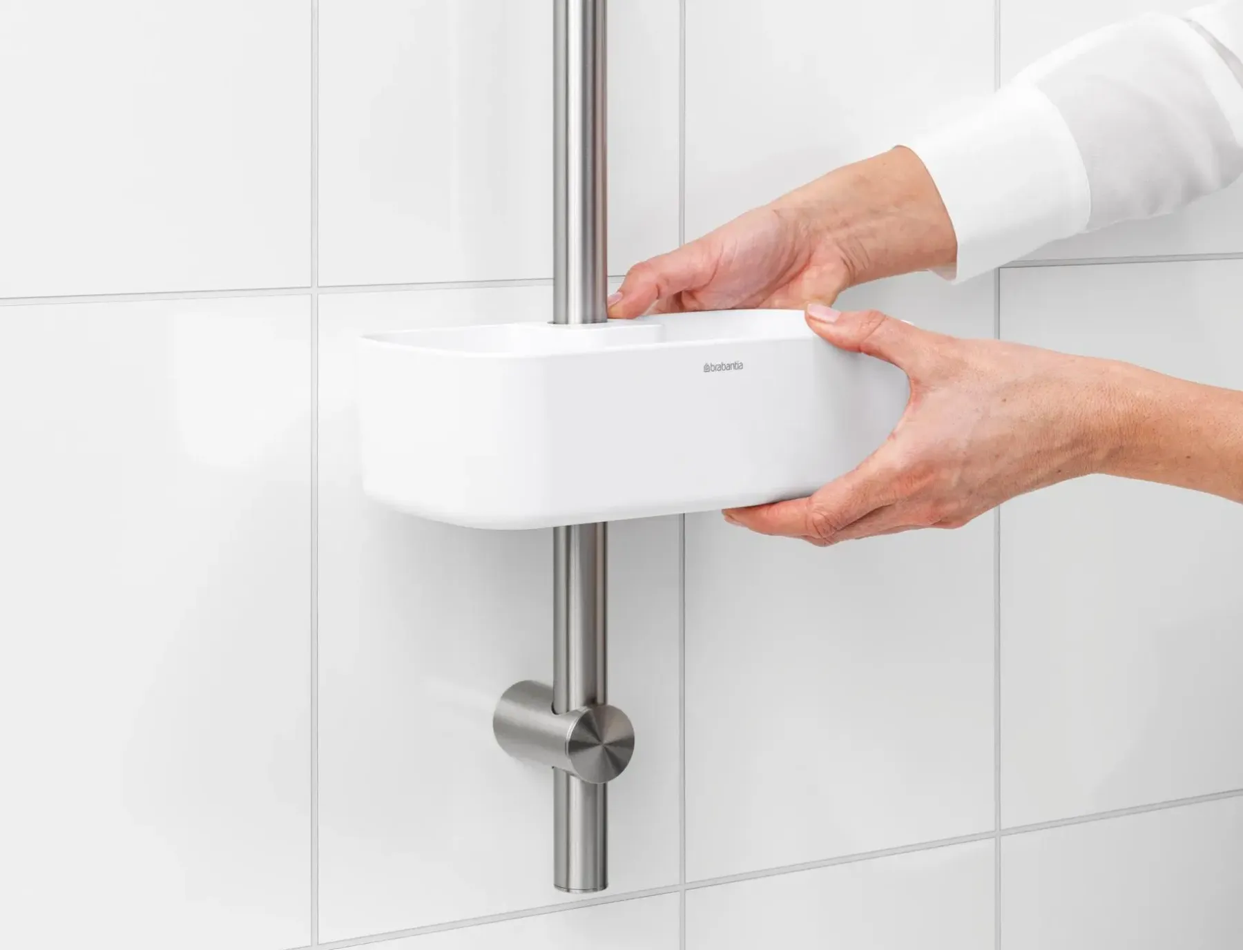Suihkutuokio moitteettomassa järjestyksessä. Olipa kyseessä shampoo, suihkugeeli, ihonhoitotuotteet tai partaveitsi… Saat kaikki suihkurituaalisi järjestykseen tällä siistillä Brabantian ReNew suihkuastialla. Kiinnitä se helposti suihkutankoon ja säädä korkeutta sinulle sopivaksi. Aika näppärä temppu pitää kylpyhuoneesi siistinä ja kauniina! Järjestyksessä – pitää suihkutarvikkeet yhdessä (2 kg asti).Säästää tilaa – kompakti muotoilu.Joustava – sopii tavallisiin suihkutankoihin (Ø 16–28 mm, vähintään 15 mm etäisyys tangon ja seinän välillä).Pidä se kuivana – pohjassa on reiät ylimääräistä vettä varten.Täydellinen korkeus – valitse ihanteellinen korkeus asennuksen aikana.Helppo asentaa – ei vaadi porausta tai teippiä.Kätevä ripustus – asennusohjeet mukana.Sopii erinomaisesti kosteisiin tiloihin – valmistettu ruostumattomista materiaaleista.Ongelmaton käyttää – 5 vuoden takuu ja huolto.Kestävämpi valinta – 100 % kierrätettävä käytön jälkeen.
