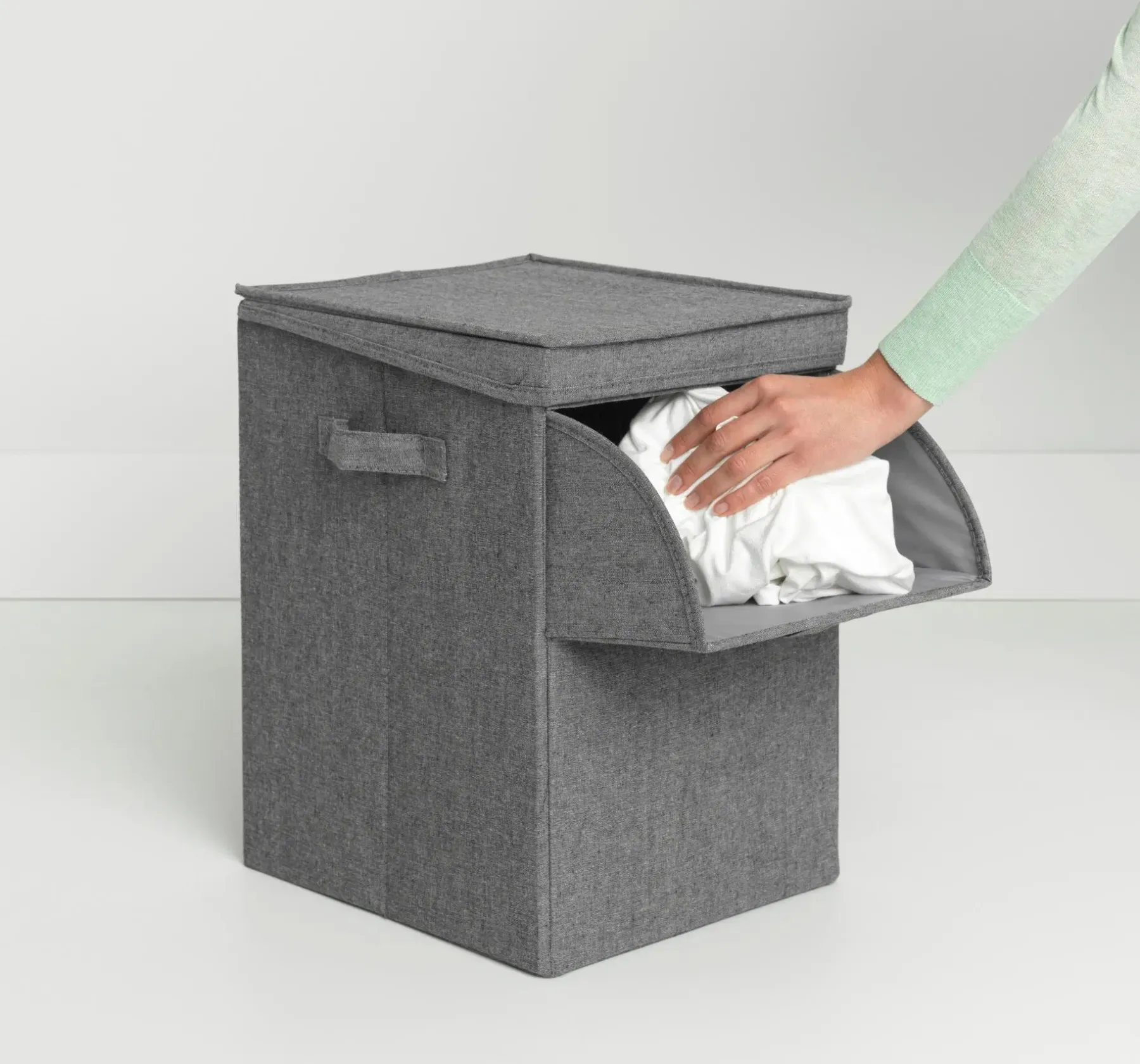 Pinoa, lajittele, pese. Haluatko enemmän kuin yhden pyykkikorin, mutta sinulla ei ole tarpeeksi tilaa? Hanki älykäs 35 litran Brabantia-pyykkikori – kulmikas ja pinottava pyykkilaatikko, jossa on tuplasti tilaa. Tukevien laatikoiden päällä on kansi ja edessä aukko, joten pyykit voidaan heittää sisään ja ottaa ulos helposti. Pinoa laatikot ja luo oma lajittelujärjestelmä säästäen samalla lattiatilaa!