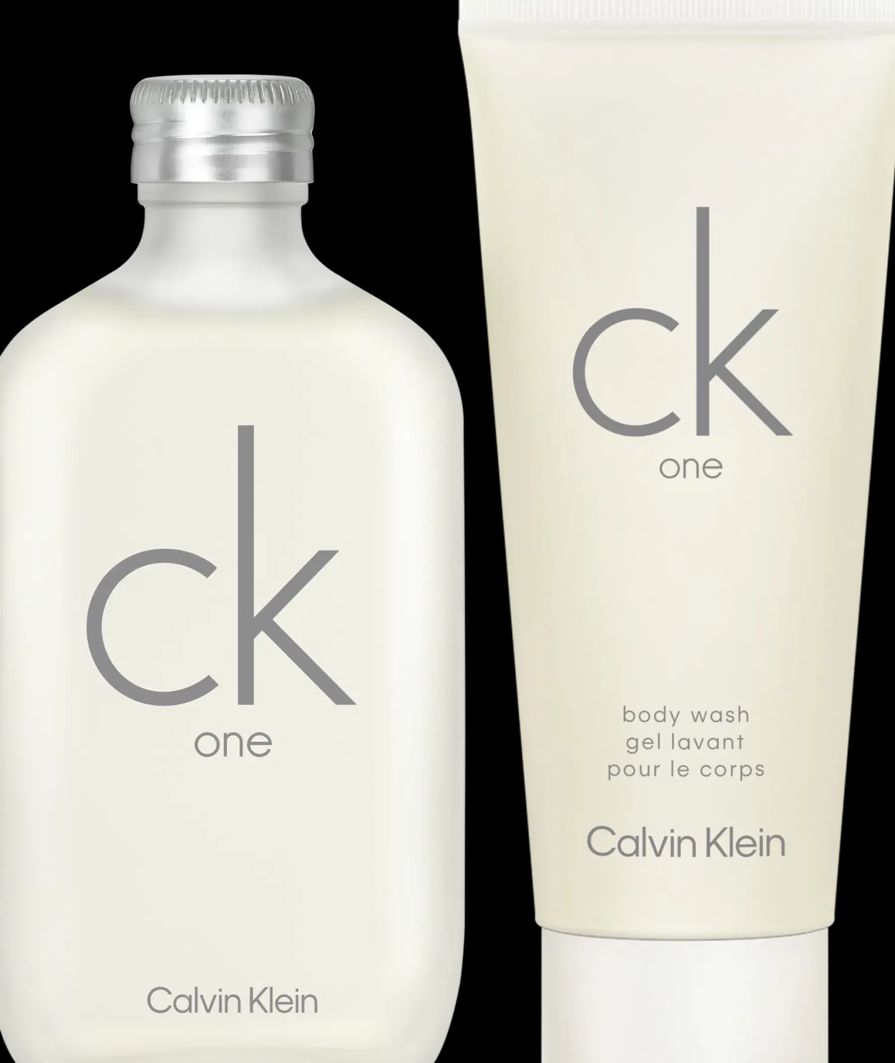 Lahjapakkaus sisältää Ck One EdT -tuoksun 100 ml ja suihkugeelin 100 ml