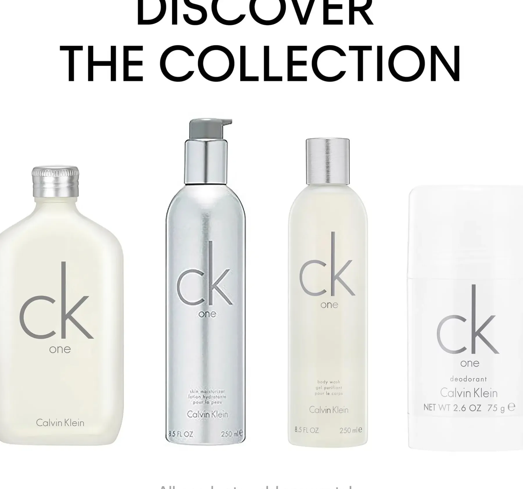 CK One ilmentää monimuotoisen maailman universaalia henkeä. Se on ikoninen tuoksu, joka on anteeksipyytelemättömän rohkea, mutta huokuu nuorekasta, raikasta yksinkertaisuutta. Yksilöllisyyttä ja yhtenäisyyttä juhlistava tuoksu herättää rajattomien mahdollisuuksien tunteen.