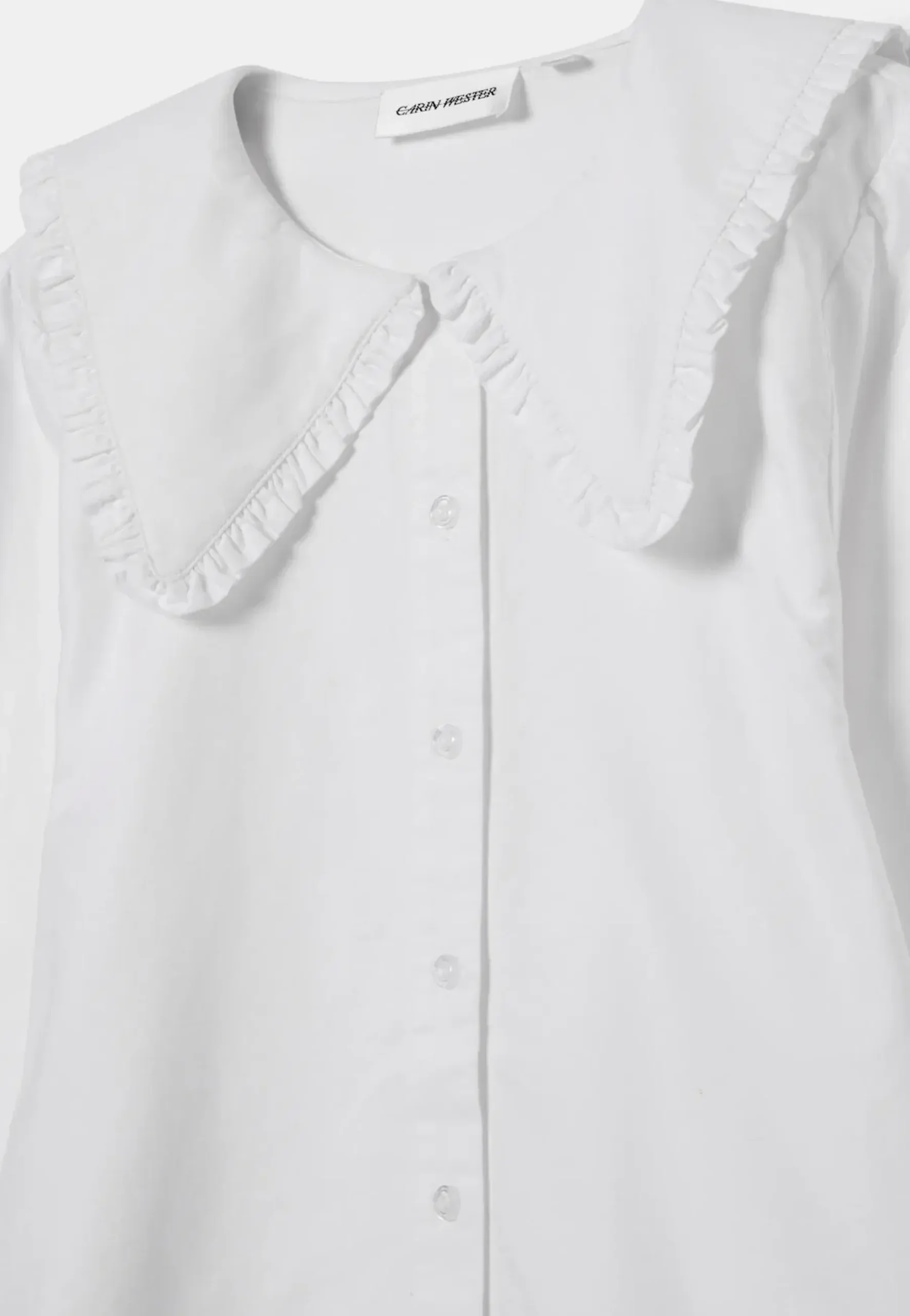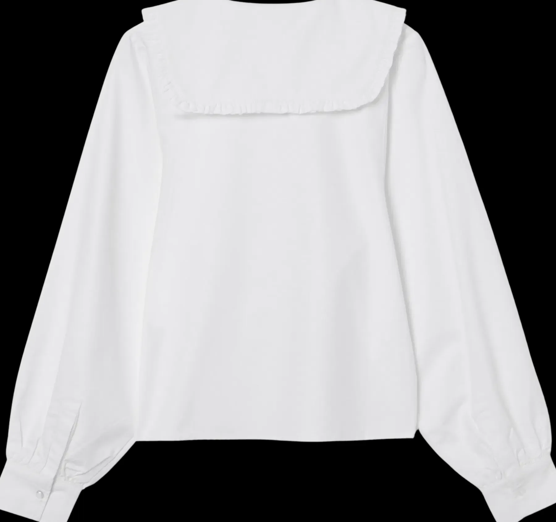 ANELLA-paita on 100 % puuvillasta valmistettu pitkähihainen pusero, jossa on suora ja väljä istuvuus. Paidassa on näyttävä röyhelökaulus, klassinen paidankaulus sekä edessä nappikiinnitys. Mallissa on suora helma ja leveät mansetit hihansuissa, mikä viimeistelee ilmeen. Tämä monikäyttöinen paita sopii niin arkeen kuin juhlaan.