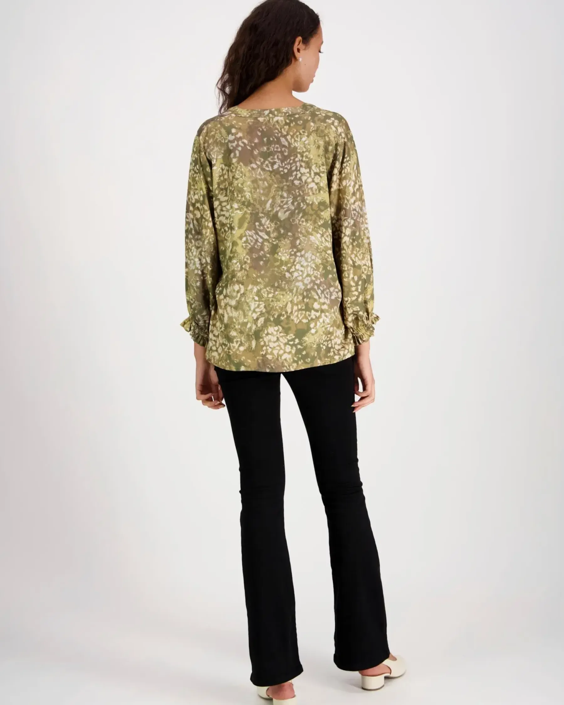 Kuosillinen pään päältä puettava paitapusero pitkillä hihoilla.Puserossa on o-pääntie ja hihansuut ovat elastiset.