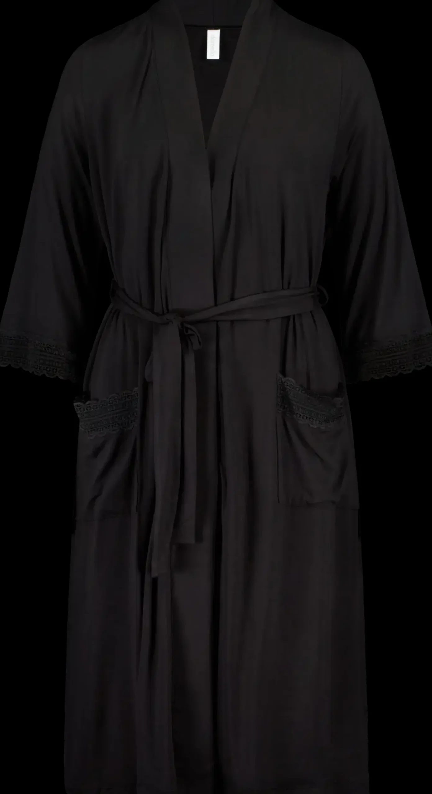Aamutakki, kietaisumali, pitsiä hihansuussa ja taskuissa, pituus 100 cm