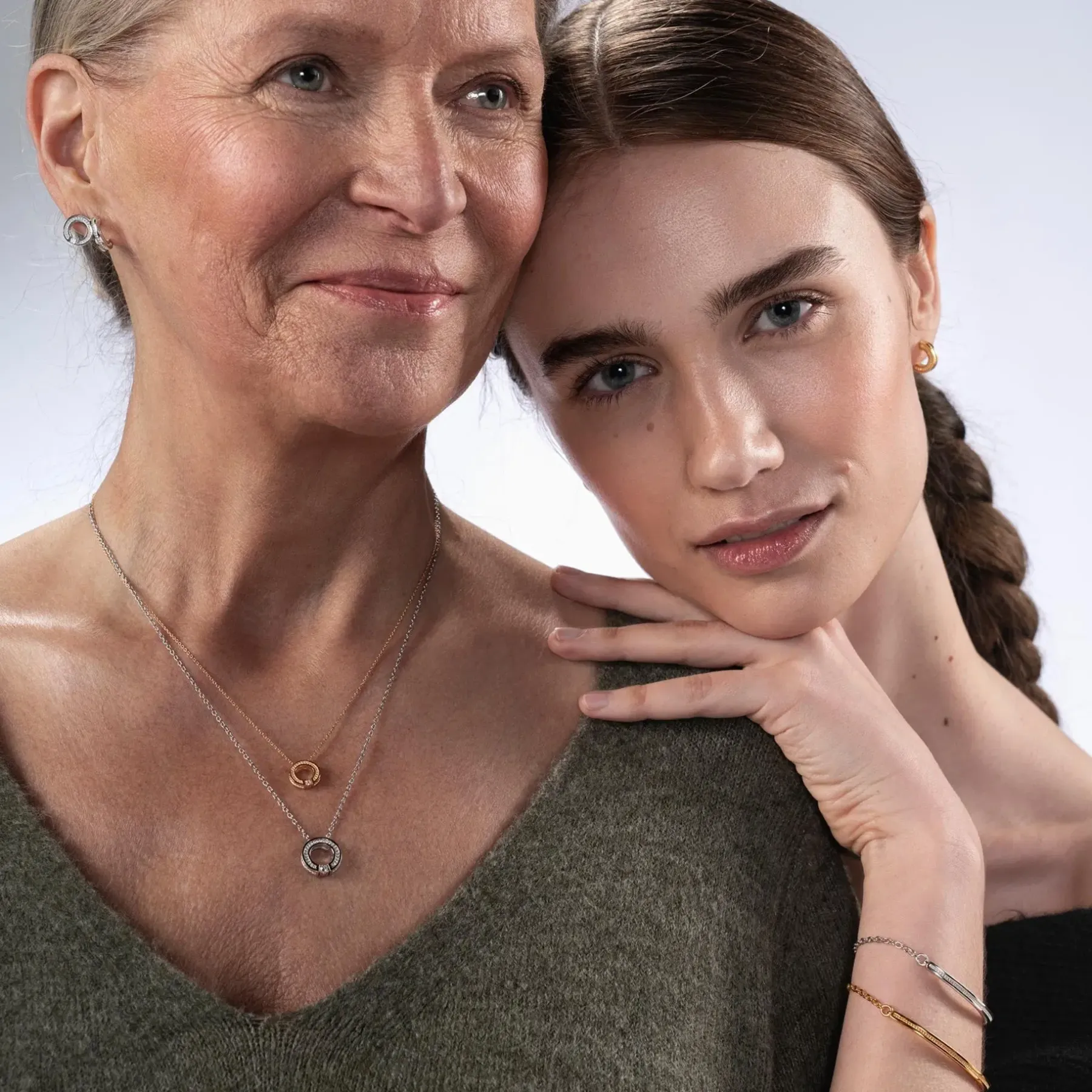 Aina-korujen pelkistetty muoto saa viimeistelyn helmeilevästä reunasta ja kirkkaasta kivestä. Sarjassa yhdistyvät selkeys ja hienovaraisuus mikä ei ole sesonkiin sidottu vaan suunniteltu kestämään aikaa – sellainen koru, joka toimii aina, riippumatta tilanteesta tai tyylistä. 100% kierrätettyä hopeaa, keltakullattu.