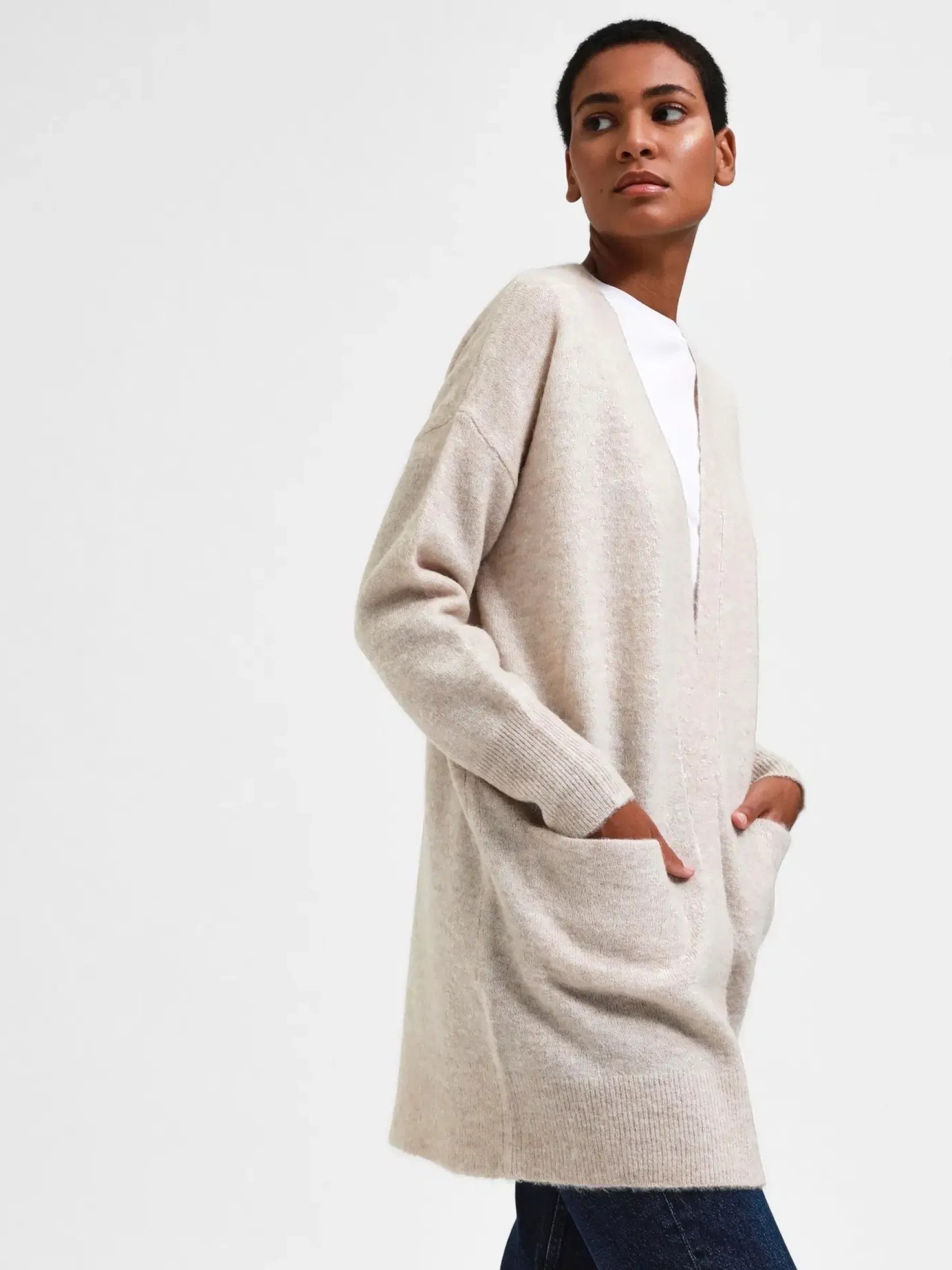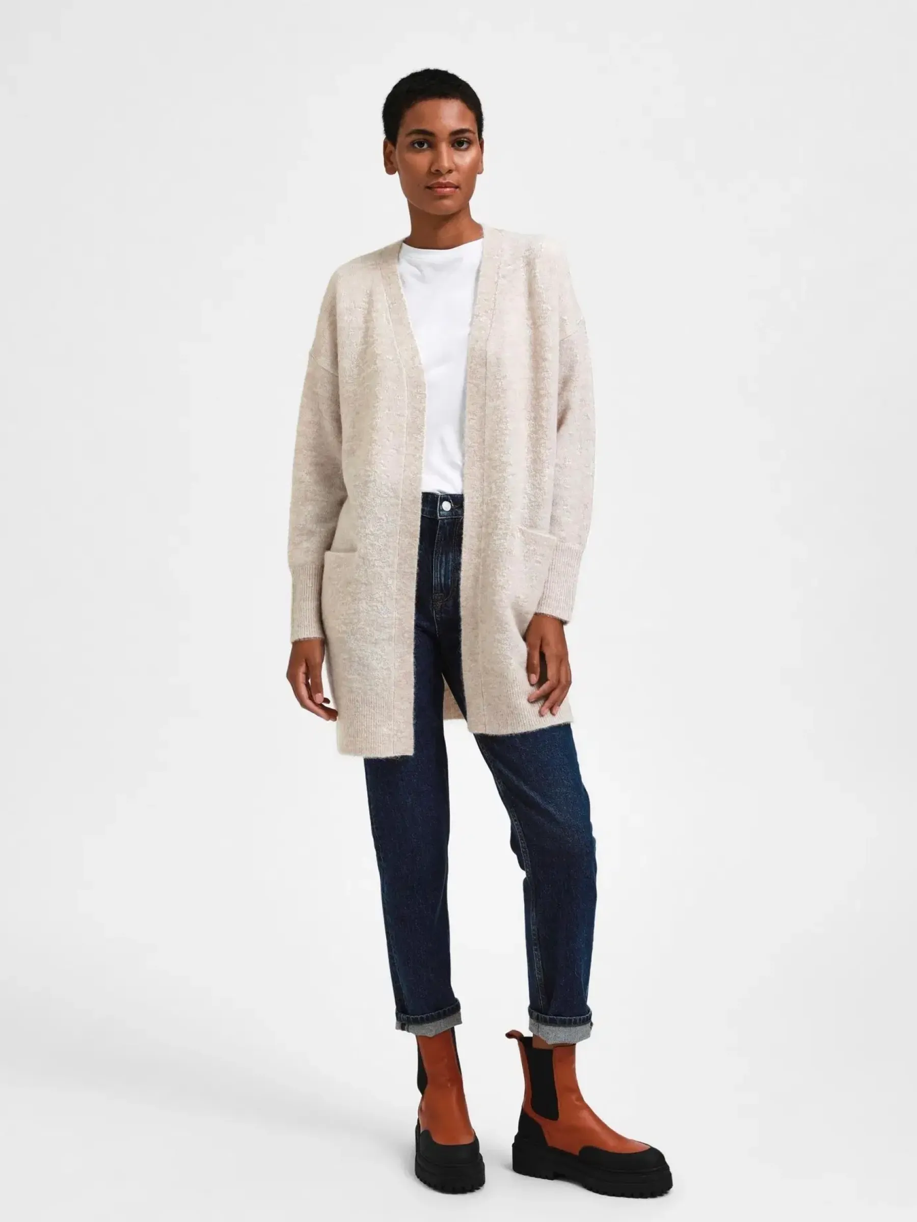 Pitkähihainen neuletakki taskuilla. Valmistettu laadukkaasta villasekoitteesta.