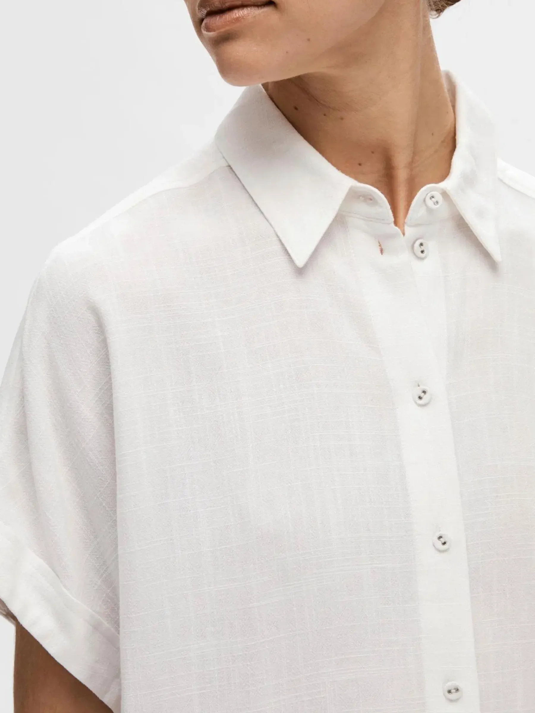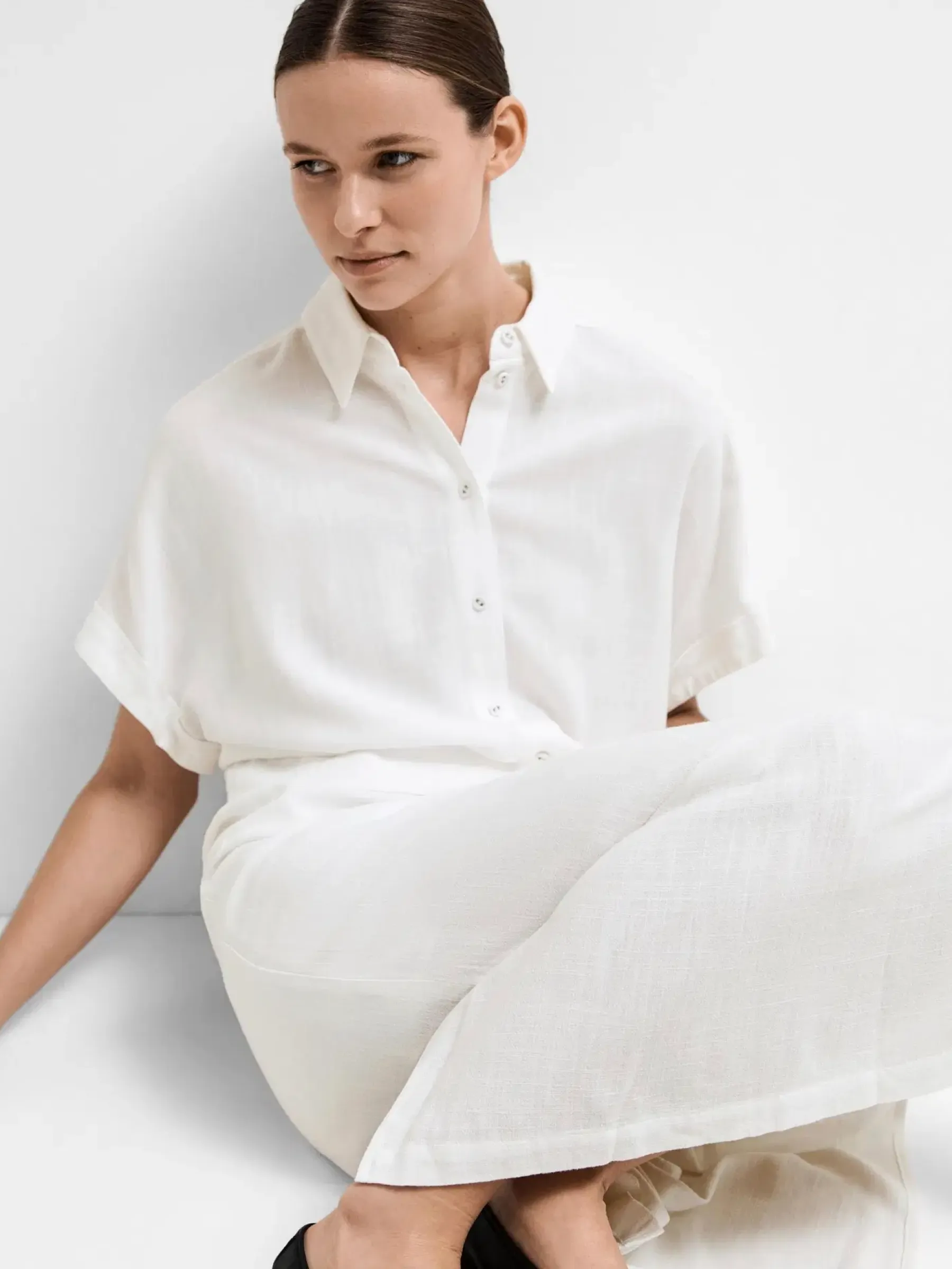 Lyhythihainen, vajaamittainen pusero. Valmistettu ihanan pehmeästä pellavasekoitteesta.