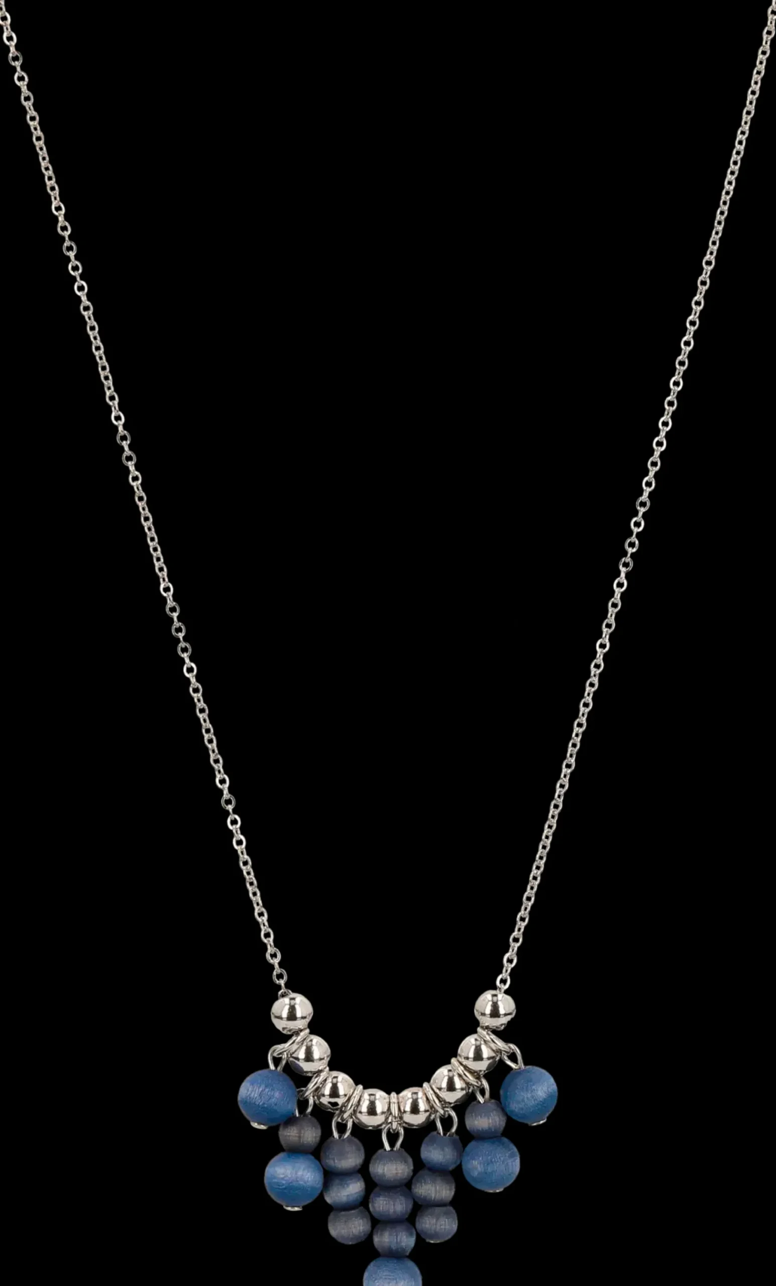 Gisella-kaulakorussa on hieno yhdistelmä käsinvärjättyjä puuhelmiä ja hohtavaa metallia. Pituus 72–82 cm. Valmistettu käsityönä Suomessa.