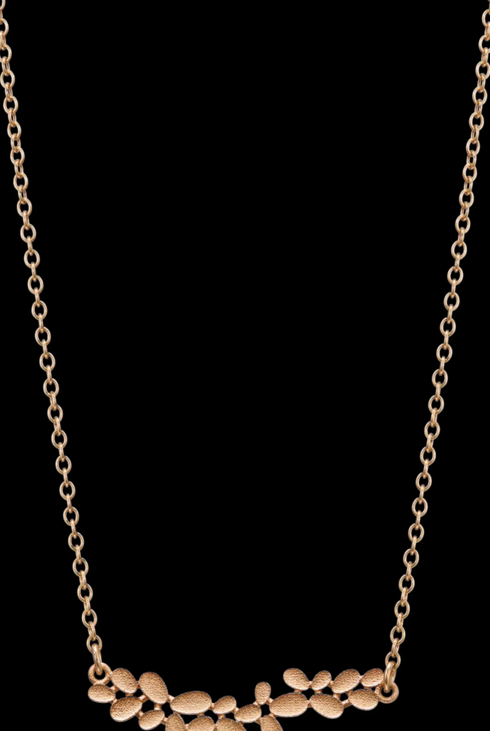 Haaveista totta. Kullanhohtoisesta pronssista valmistetun Haave-kaulakorun riipusosassa pienistä mattapintaisista silmuista muodostuu herkkä pitsimäinen kudelma. Jousirengaslukko. Säädettävä pituus 42/45 cm.