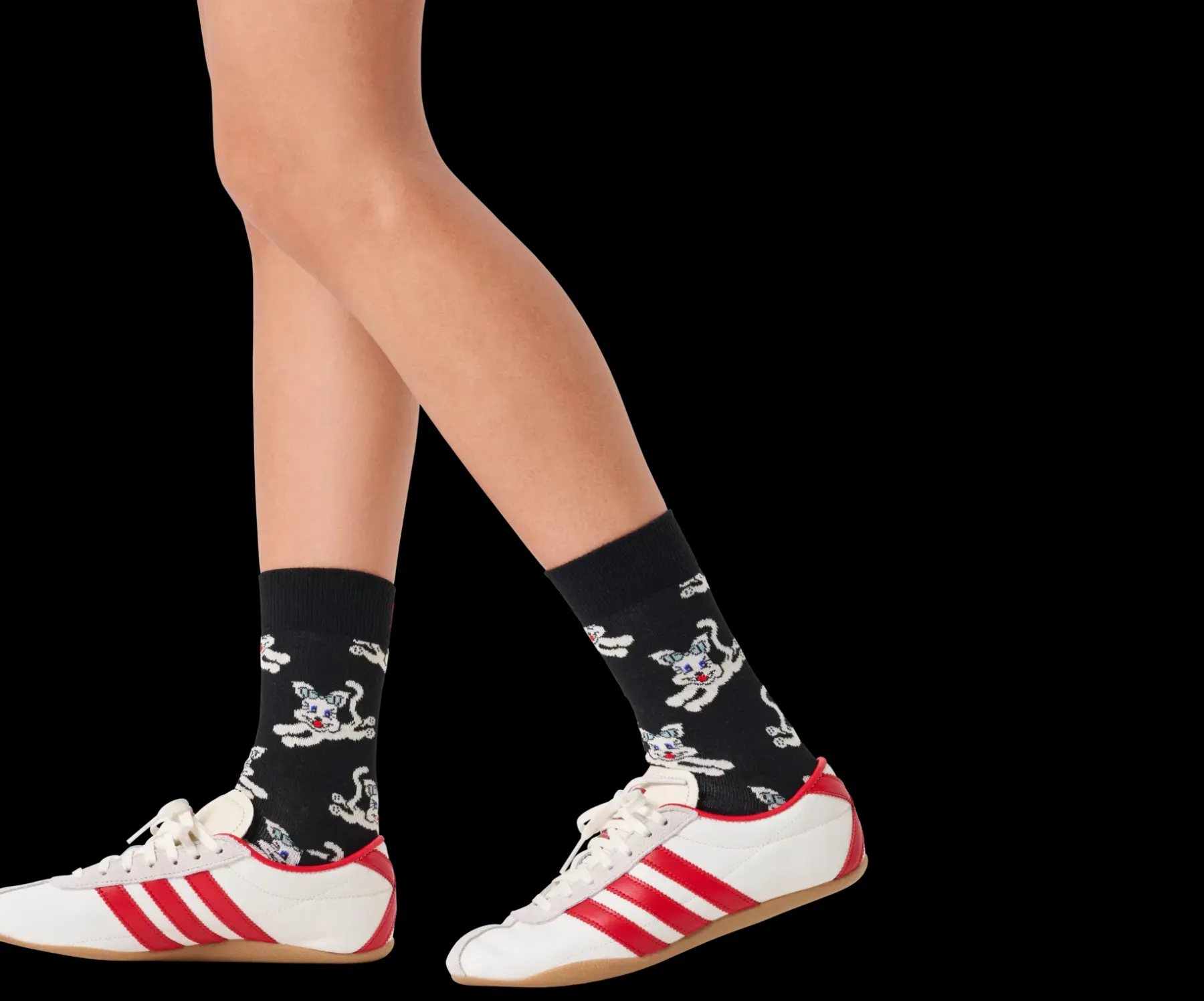 Happy Cat -sukat – iloisia kissoja jaloillesi! Happy Socks mallin toistuva kissakuosi tuo hymyn huulille ja ripauksen leikkisyyttä asuusi. Täydellinen kaikille kissafaneille ja persoonallisia kuoseja rakastaville.