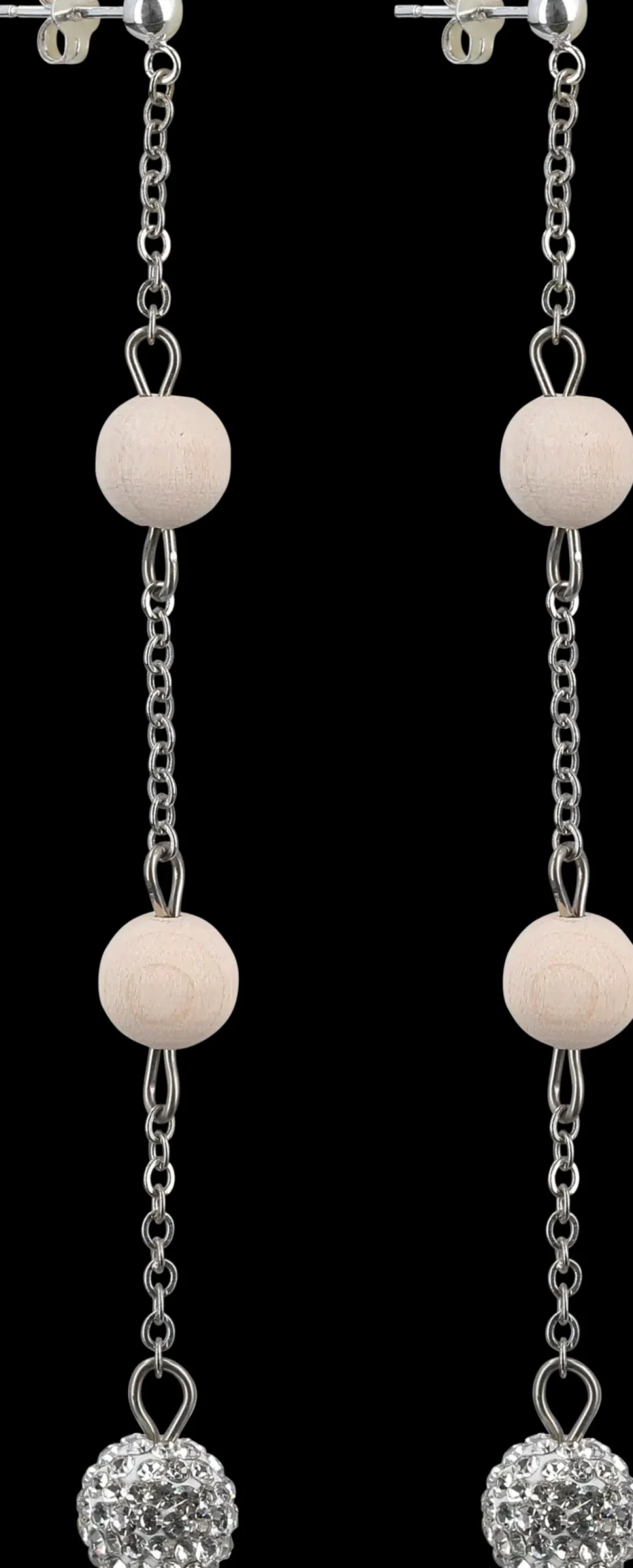 Jade-kristallikorvakoruissa yhdistyy juhlavasti puuhelmet ja kristallin hohde. Pituus: 9,5 cm. Valmistettu käsityönä Suomessa.