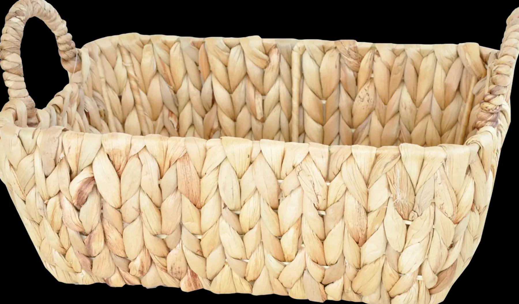 Vesihyasintista valmistettu kahvallinen kori.
