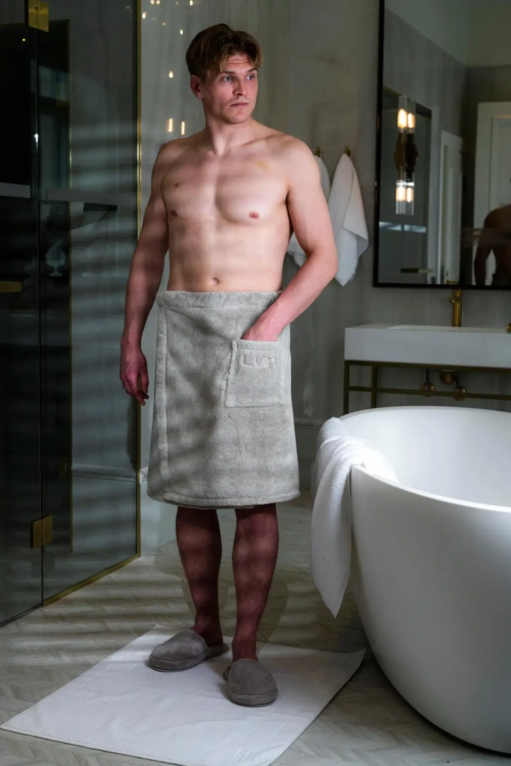 Tyylikäs ja miellyttävä kietaisupyyhe, joka toimii täydellisesti pyyhkeenä ja jossa viihtyy vaikka koko illan. Materiaalina laadukas, imukykyinen sekä erittäin pehmeä 100% Luin Spa Signature -puuvilla. Reilu koko 60×150 cm. Aikaa kestävä ja kätevä nepparikiinnitys. Koko säädeltävissä neppareiden avulla, selästä joustava vyötärö, sivulla iso tasku.