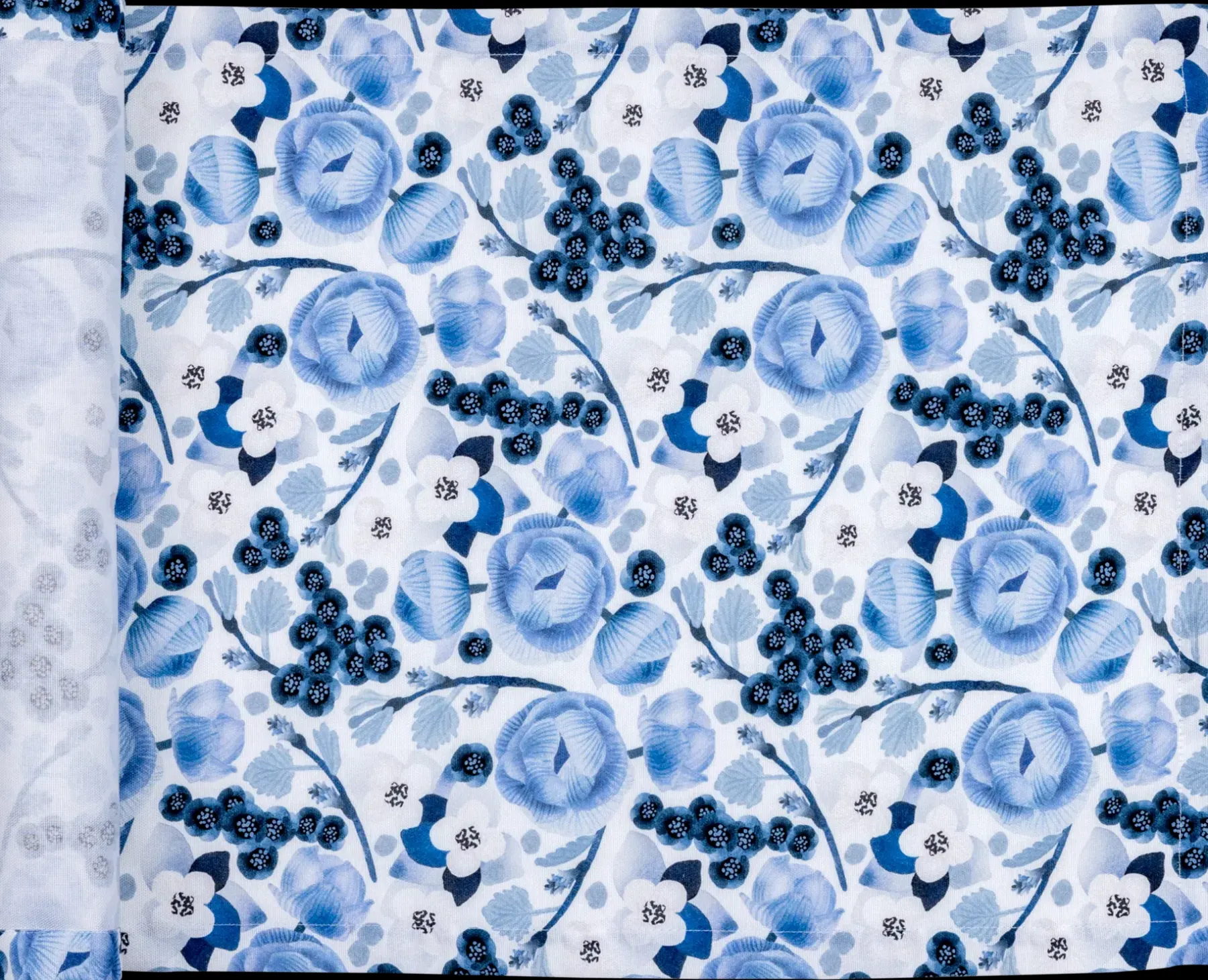 Yöttömän yön kukkaloistoa. Lapissa kaikki kukkii nopeasti. Mutta sitäkin kauniimmin. Läpi vuorokauden paistava aurinko saa kukkien lisäksi myös ihmiset ottamaan kaiken ilon irti vuoden kauneimmasta ajasta. Lasse Kovanen maalasi vesiväreillä lapin kasveja – sinirikkoja, ruohokanukoita, vaivaiskoivun oksia ja tietysti kulleroita – pinnaksi, joka muistuttaa alkukesän kukkivaa metsänpohjaa. Sinivalkoinen värimaailma tuo kuosiin samaan aikaan välimerellisen ja pohjoismaalaisen tunnelman. Lapinkukka-malliston astiat, kankaat, tyynynpäälliset, keittiötekstiilit ja pöytäliinat saavat lapin ohikiitävän kukinta-ajan jatkumaan kesästä talveen ja syksystä seuraavaan kesään. Sinivalkoinen Lapinkukka-akryylipinnoitettu kaitaliina on käytännöllinen valinta ruokapöytään, sillä se hylkii likaa ja on helppo pyyhkiä puhtaaksi. Kaitaliinan koko on 45×160 cm ja se materiaali on 100 % akryylipinnoitettua puuvillaa. Kestää konepesun varovaisella ohjelmalla 40 asteessa.