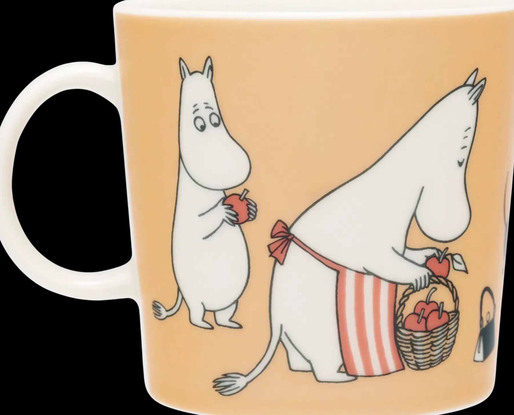 X-mukissa tapaat Miisan, joka saa vastuulleen muumi-perheen omenoiden poimimisen. Miisalta jää tehtävä kesken hänen turhautuessaan pienestä tekemästään virheestä. Lopulta Muumimamma auttaa häntä. Yhdistelemällä eri 0,4 l Aakkosmukeja toisiinsa voit kattaa pöydän merkityksellisillä sanoilla. Moomin Arabia -muki 0,4L ABC, X