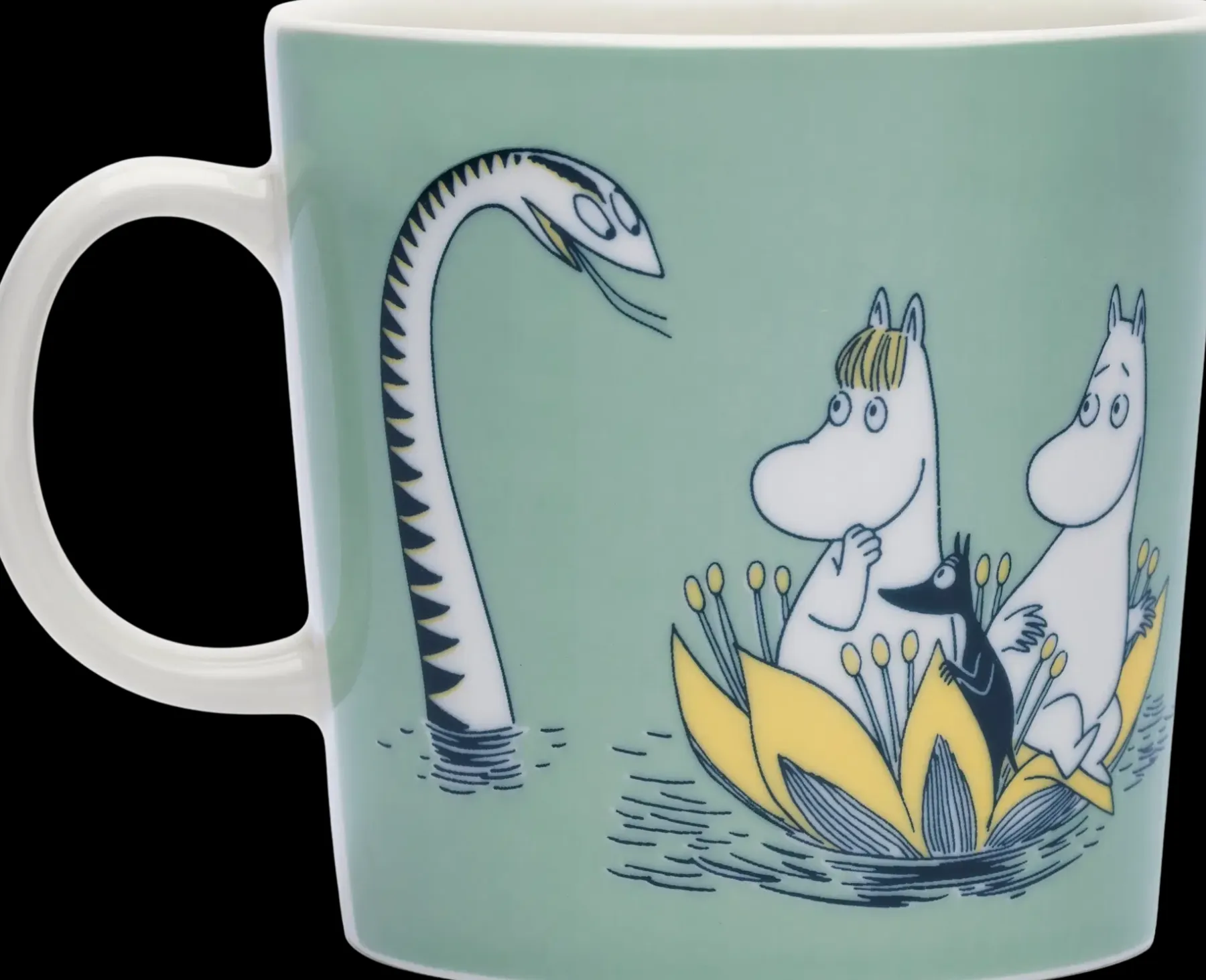 W-mukissa Muumilaakso on muuttunut viidakoksi, ja Haisuli on päästänyt eläintarhan asukkaat vapaaksi. Kun kyse on Haisulista, kepposilta ei vältytä. Tällä kertaa hän on onnistunut huijaamaan Niiskuneitiä ja Muumipeikkoa. Jättililjojen sijaan he tapaavat järvellä jättikokoisen käärmeen. Moomin Arabia muki 0.4 l, ABC W