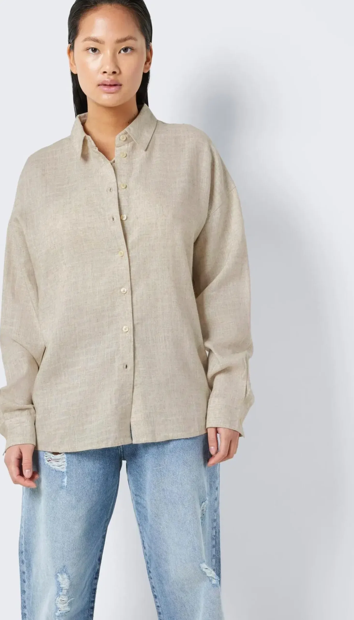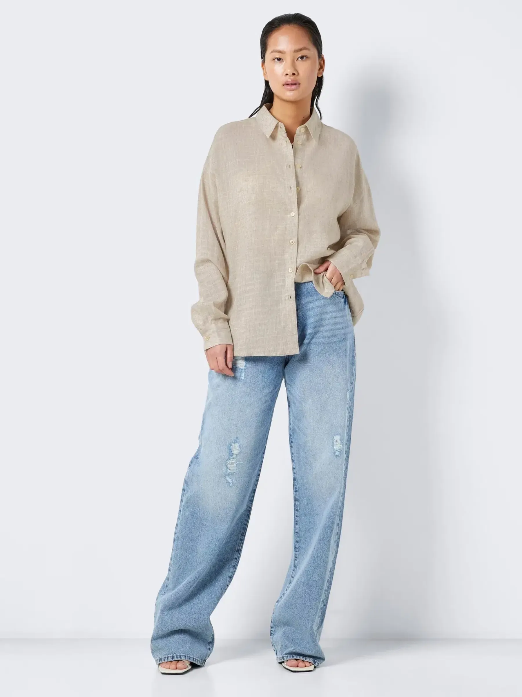Pitkähihainen paitapusero pellavasekoitteesta.