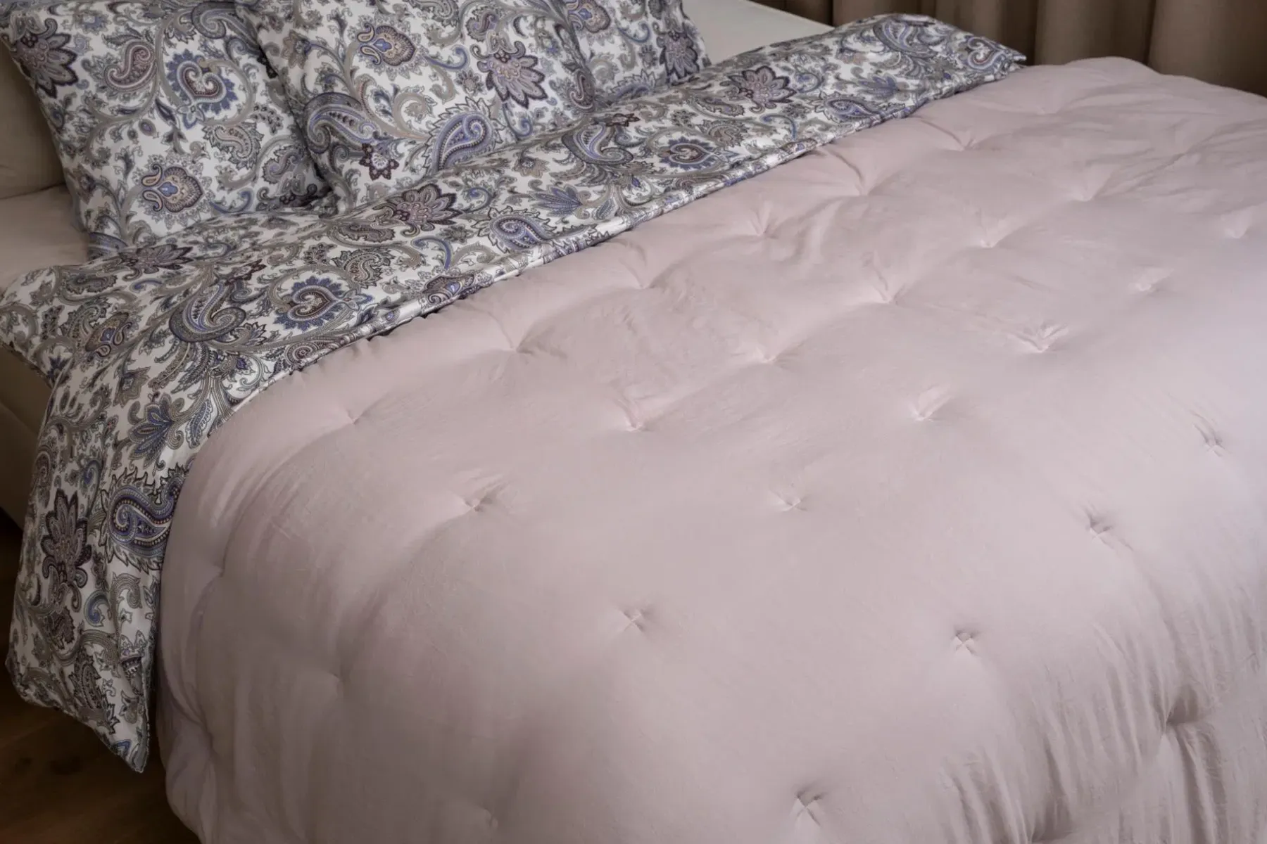 Muhkea ja pehmeä Tova-päiväpeite koristetikkauksilla, kuin poutapilvi sängyn päällä. Valmistettu kierrätysmateriaalista. Materiaali: kangas 100 % kierrätetty polyesteri, täyte 100% polyesteri. Erittäin varovainen vesipesu 30 asteessa.