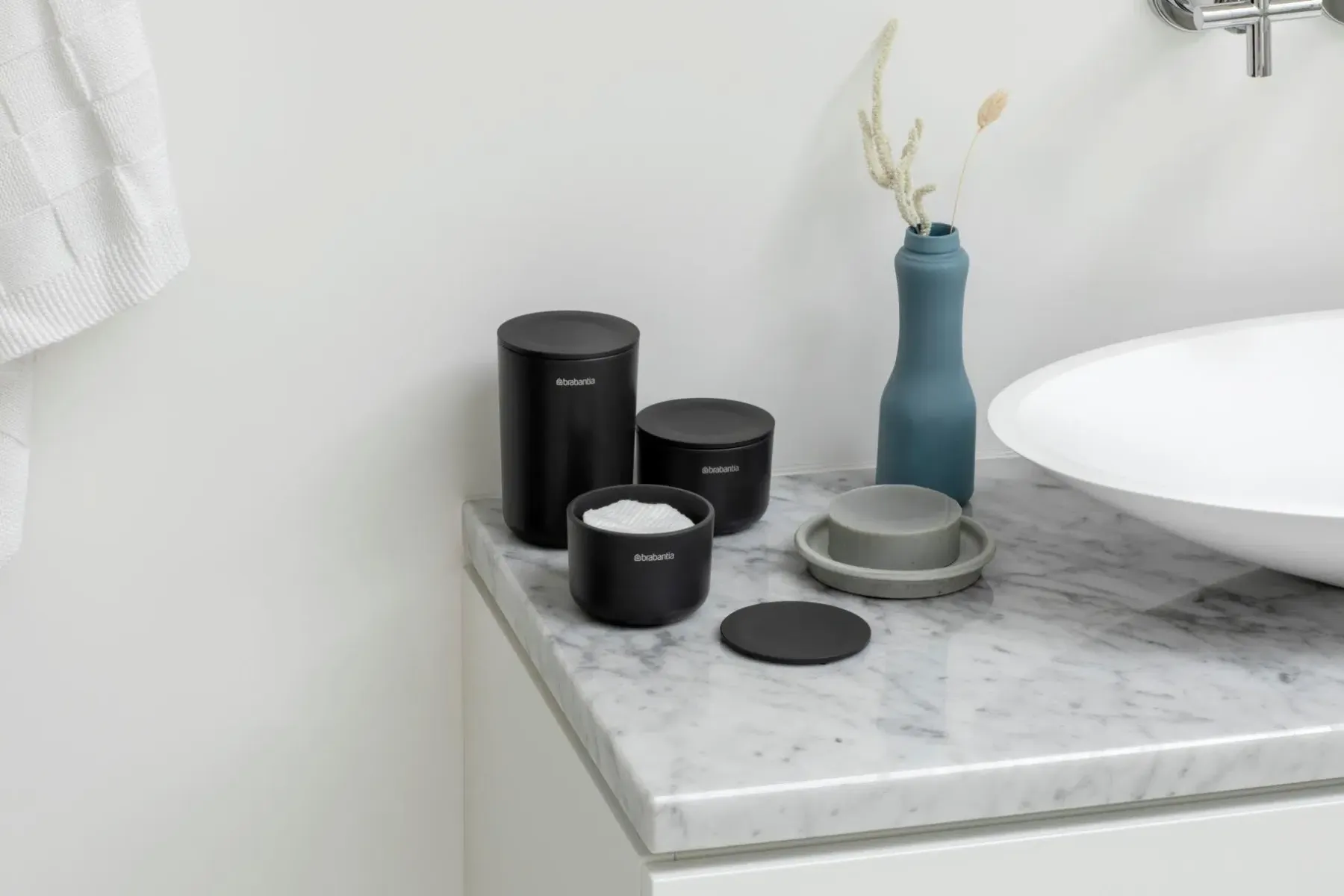 Kaikille pikkutavaroillesi. Pienet asiat tekevät meidät onnellisiksi. Tässä on ihastuttava kolmen kappaleen Brabantian ReNew säilytyspurkkisetti. Kaksi kivaa purkkia pinneille, korvakoruille ja kaikille muille pienille tavaroille, jotka haluat pitää yhdessä. Isompaan astiaan sopii täydellisesti vanupuikot tai pumpulityynyt. Kerää ne, säilytä ne, rakasta niitä. Täydellinen – 3 kappaleen säilytyspurkkisetti.Järjestyksessä – pinneille, korvakoruille ja kaikille muille pienille tavaroille, jotka haluat pitää yhdessä.Tilatehokas – pinottava muotoilu.Suojattu – kannet pitävät sisällön siististi peitettynä ja pölyttömänä.Seisoo vakaasti, naarmuuntumaton – liukumaton pohja jokaisessa säilytysastiassa.Sopii erinomaisesti kosteisiin tiloihin – valmistettu ruostumattomista materiaaleista.Ongelmaton käyttää – 5 vuoden takuu ja huolto.Kestävämpi valinta – 100 % kierrätettävä käytön jälkeen.