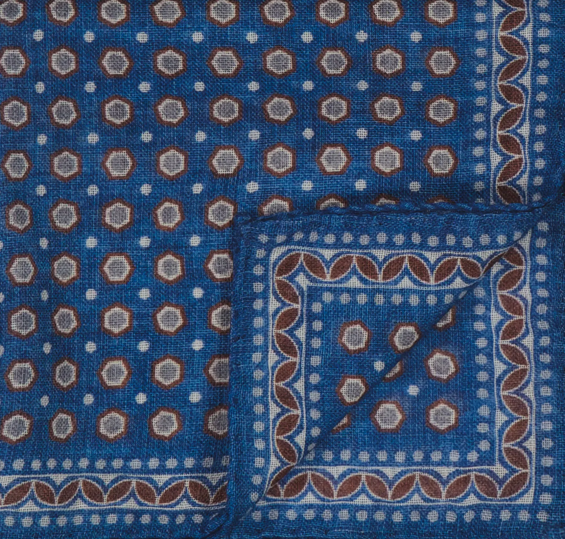 Tyylikäs italialainen painettu villa-taskuliina. Vesipesu kielletty, yhden pisteen silitys.