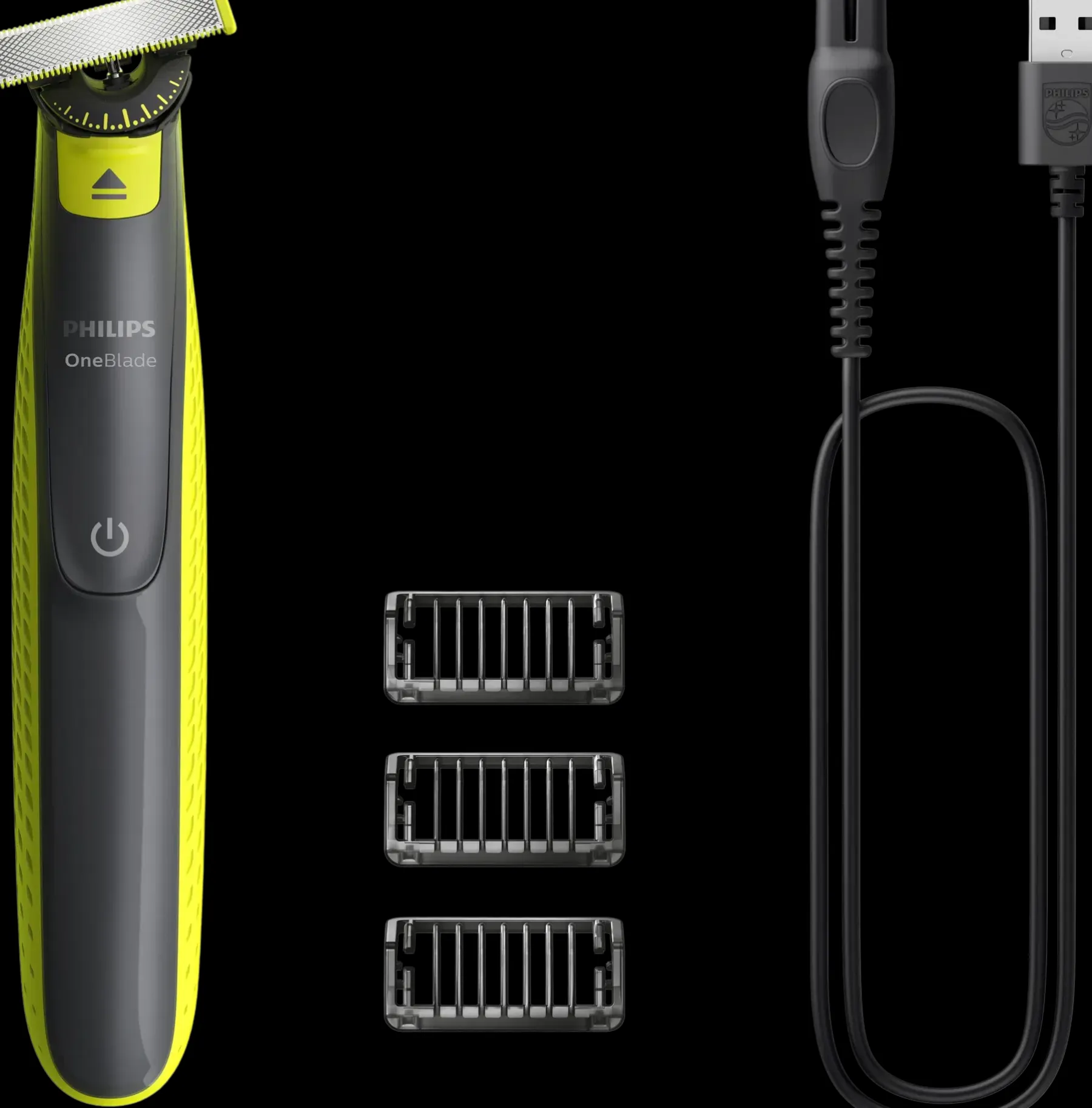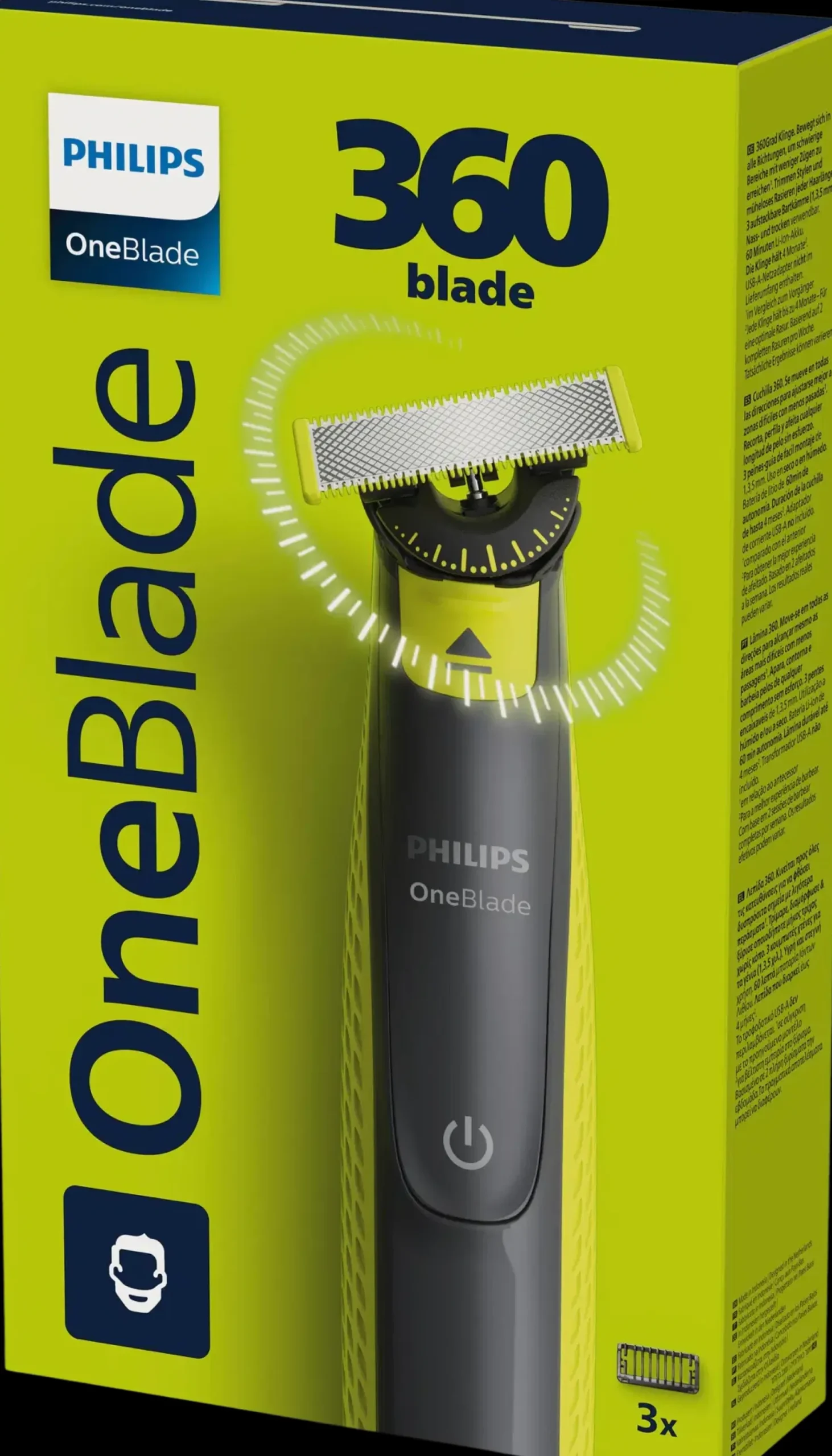 Uudella OneBlade 360 -laitteella trimmaat, rajaat ja ajelet kaiken pituisia partakarvoja helpommin kuin koskaan. Innovatiivinen 360 asteen terä kääntyy kaikkiin suuntiin seuraten tarkasti kasvojen muotoja. Haastavienkin ihoalueiden trimmaus ja ajelu käy helposti, nopeasti ja mukavasti. Pakkaus sisältää kolme sänkikampaa (1, 3, 5 mm).