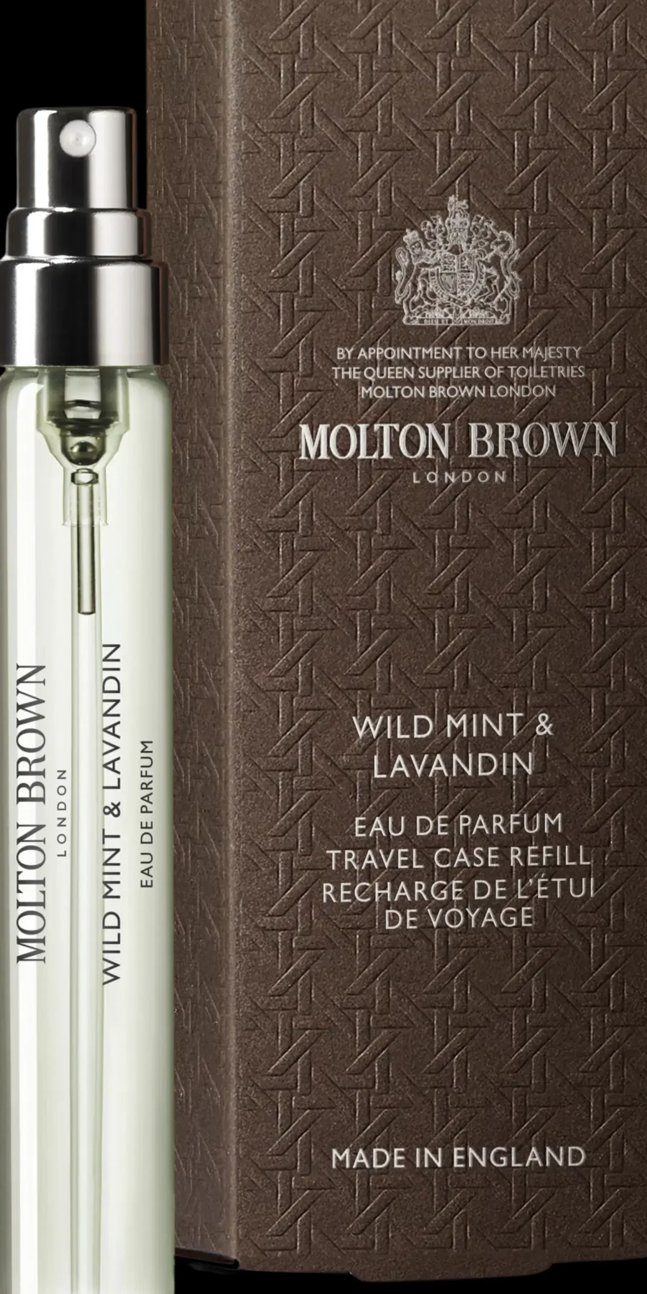 Molton Brown Wild Mint & Lavandin EdP Travel Case on raikkaan aromaattinen tuoksu, joka avautuu villimintun pirteillä nuoteilla edeten yrttisen laventelin sydäntuoksuun. Puuvivahteisessa pohjatuoksussa on täyteläistä tonkapapua. Lämmin kurjenmiekanjuuri ja muskotti antavat säväyksen modernia eleganssia.