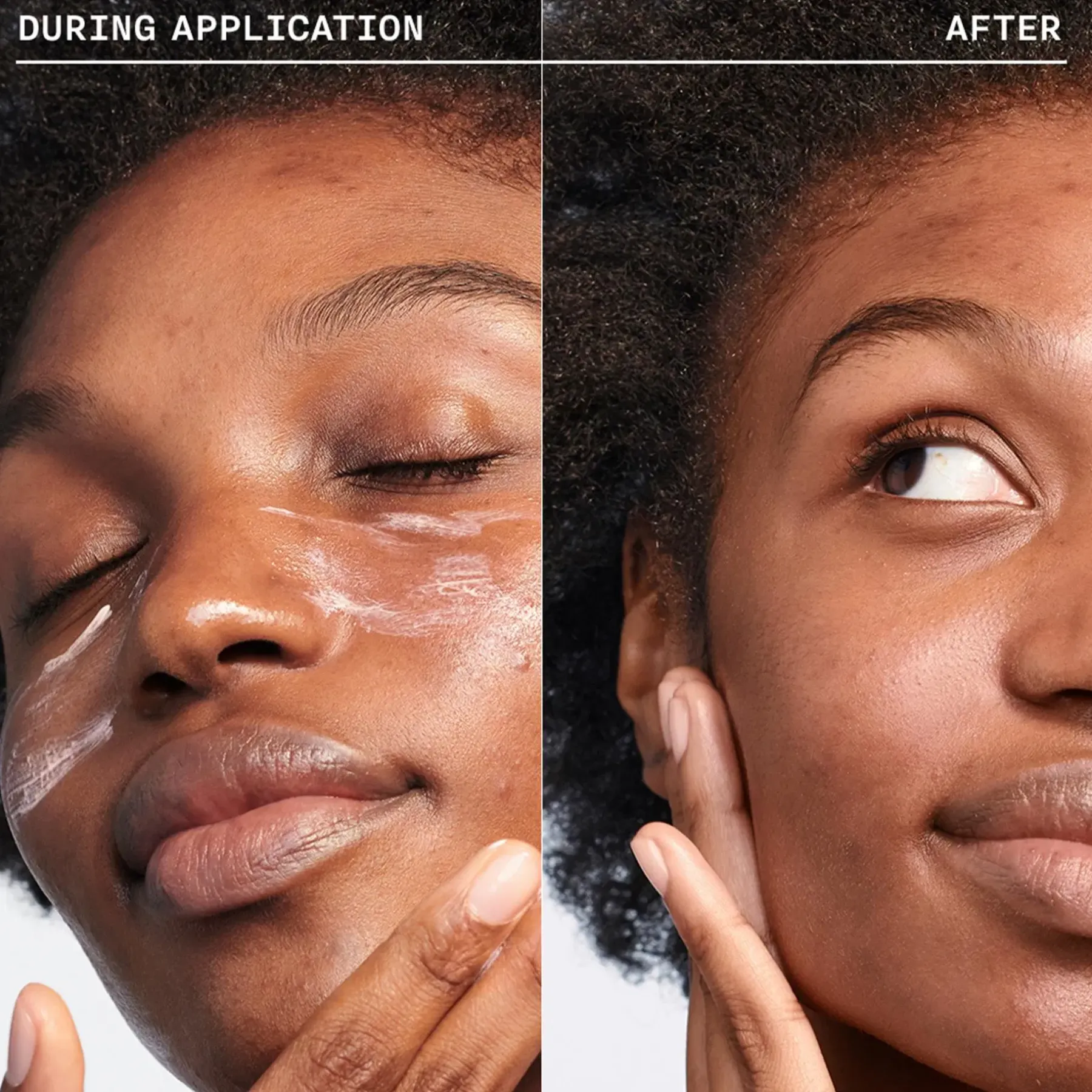 • Taputtele tai hiero ulospäin koko kasvoille. Taputtele tai hiero, kunnes tuote on täysin läpikuultavaa.