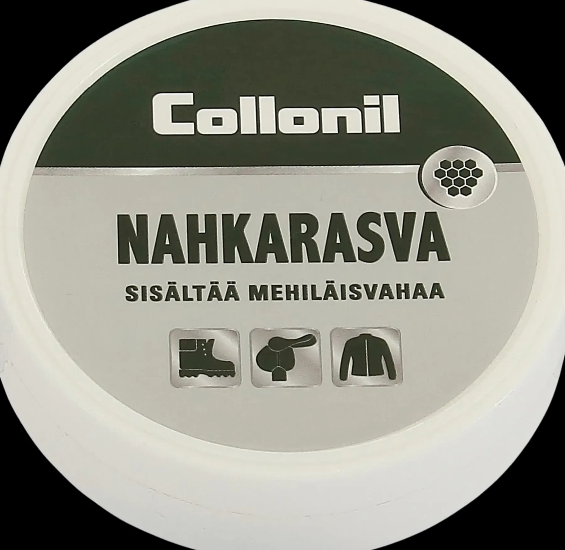 Hoito: Aitoa mehiläisvahaa sisältävä nahkarasva. Pitää nahan kunnossa. Sopii myös nahkasohvien, satuloiden ja nahkatakkien hoitoon.