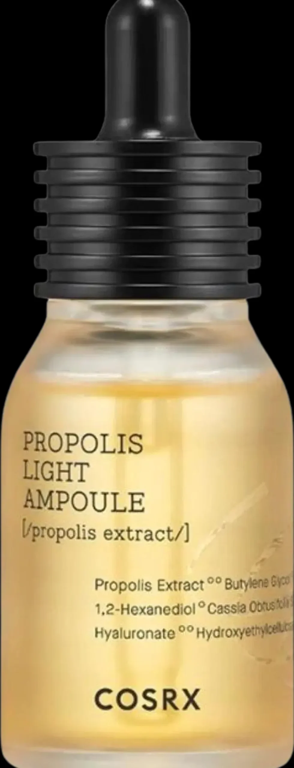 Propolis Extract, Butylene Glycol, Glycerin, Betaine, 1,2-Hexanediol, Cassia Obtusifolia Seed Extract, Sodium Hyaluronate, Hydroxyethylcellulose, Carbomer, Panthenol, Arginine