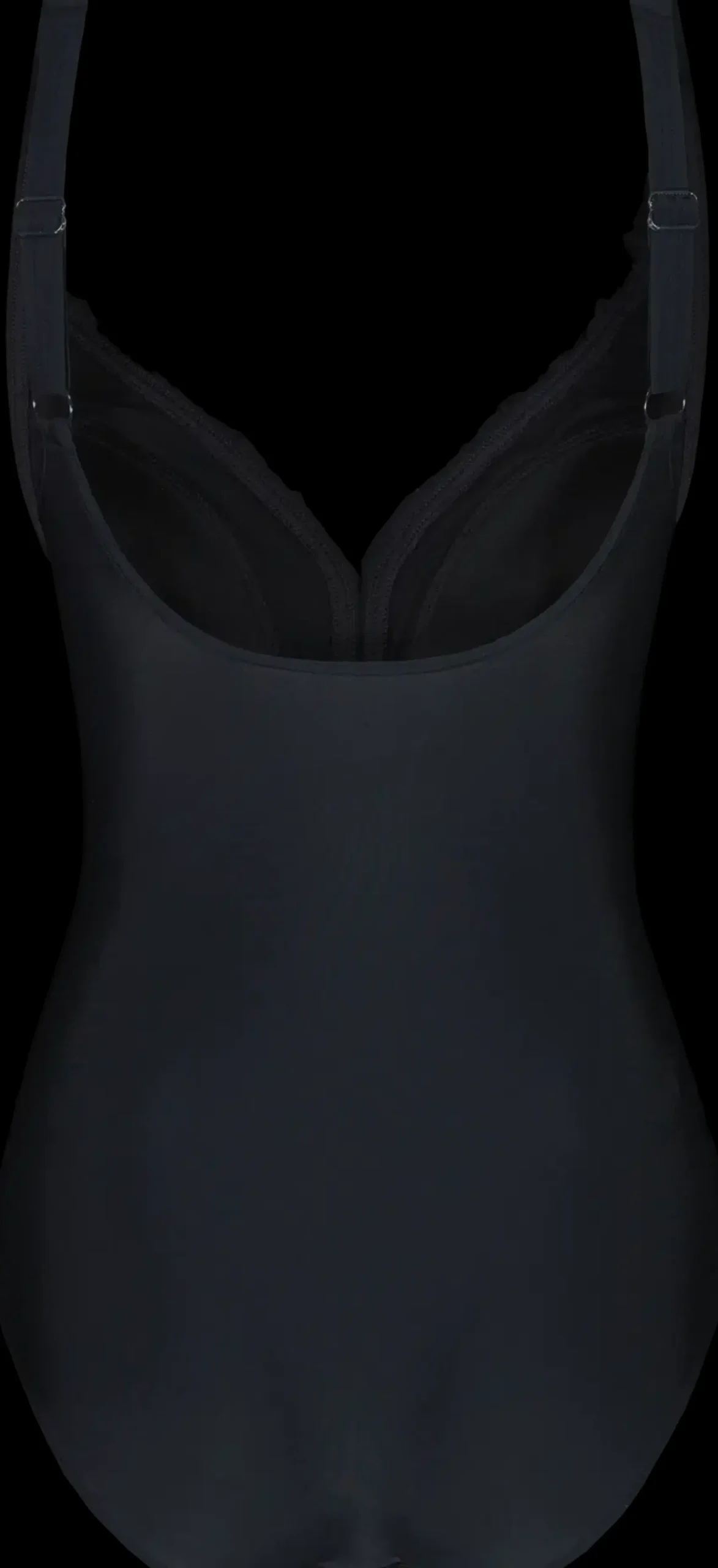 Uimapuku Virginia, topatut kupit, edessä röyhelöt ja laskoksia, säädettävät olkaimet