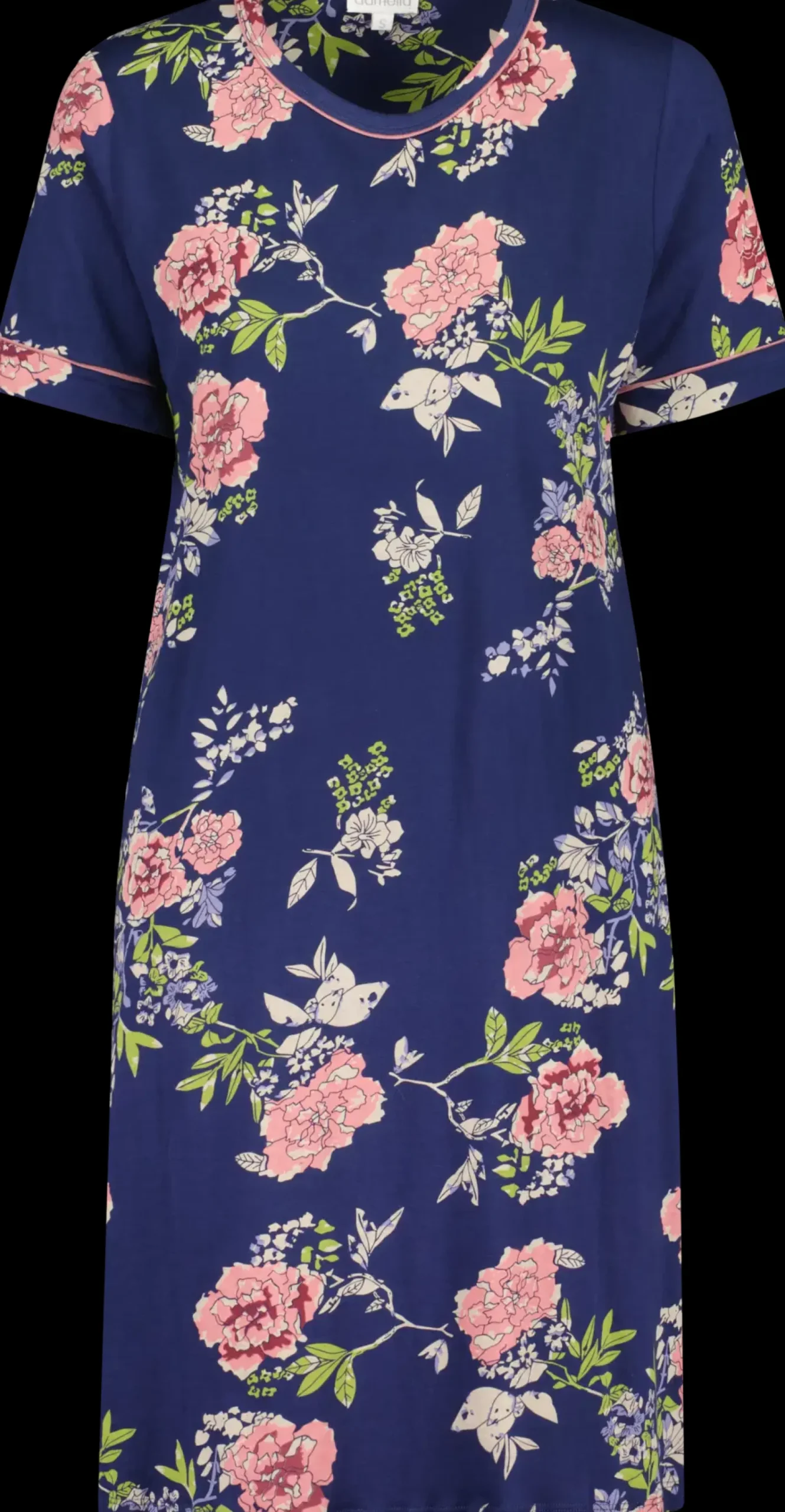 Lyhythihainen yöpaita, orgaanista puuvillaa, O-aukko, kukkakuosi, pituus 95 cm