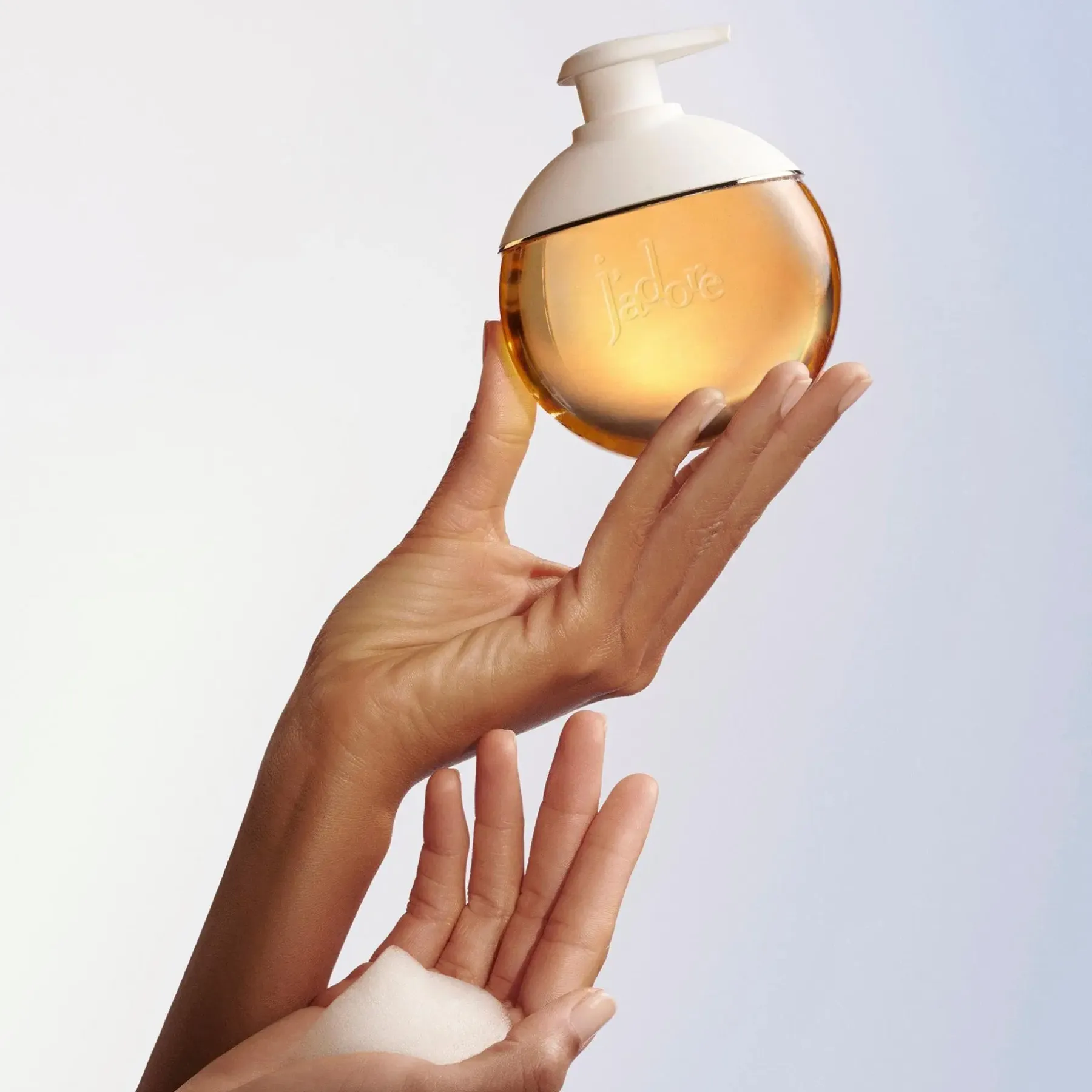Suihkugeelin läpikuultava pullo on koristeltu ikonisella J’adore-tekstillä. Pumppupullon pyöreä muoto muistuttaa J’adore-helmeä, ja se annostelee juuri oikean määrän tuotetta yhdellä pumpauksella. Tyylikäs ja käytännöllinen muotoilu tekee tuotteesta helpon ja intuitiivisen käyttää.