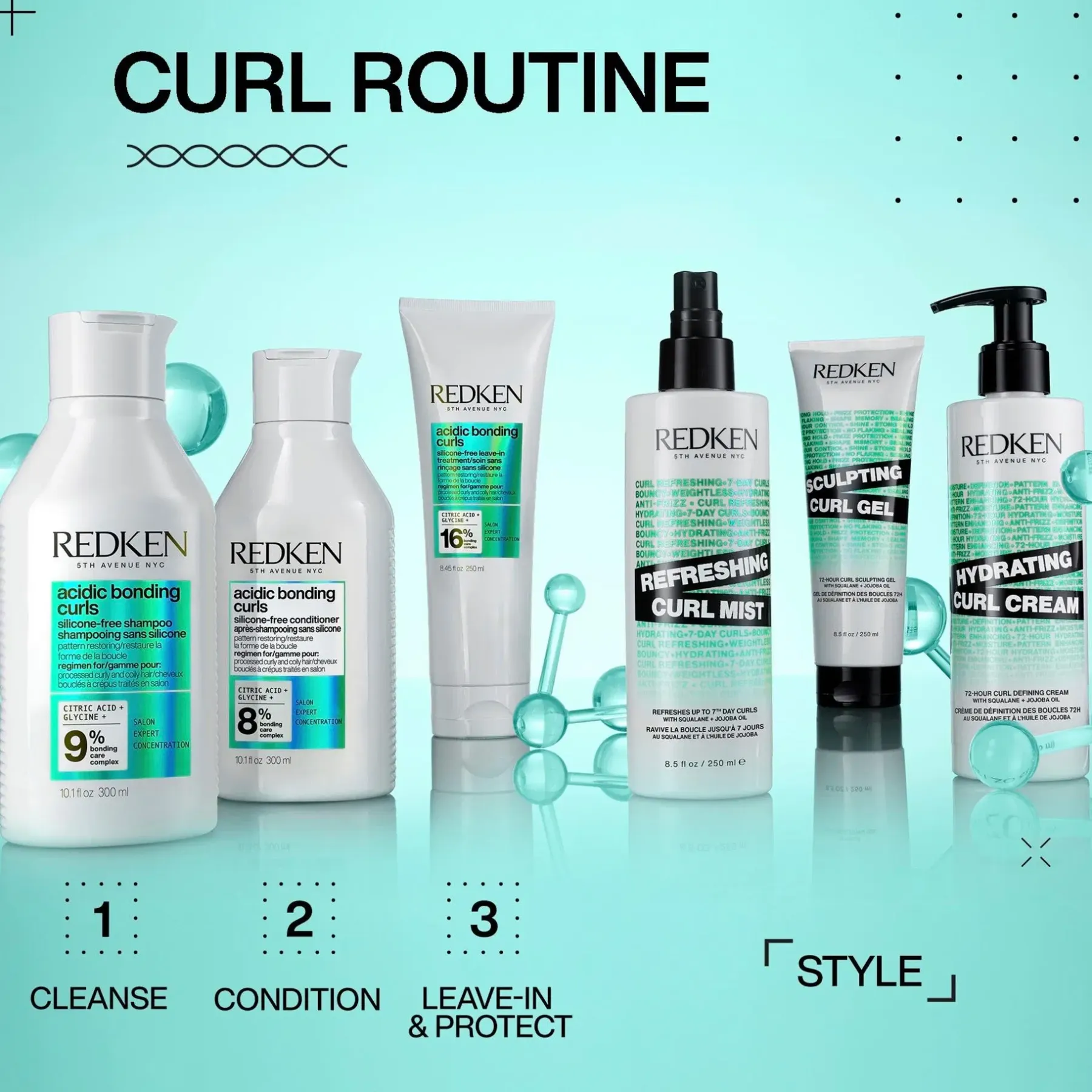 Kehitetty Curl-Bond -teknologialla (sitrushappo + urea + glysiini) rakentamaan sidoksia ja korjaamaan kiharoiden vahvuutta sisältäpäin.