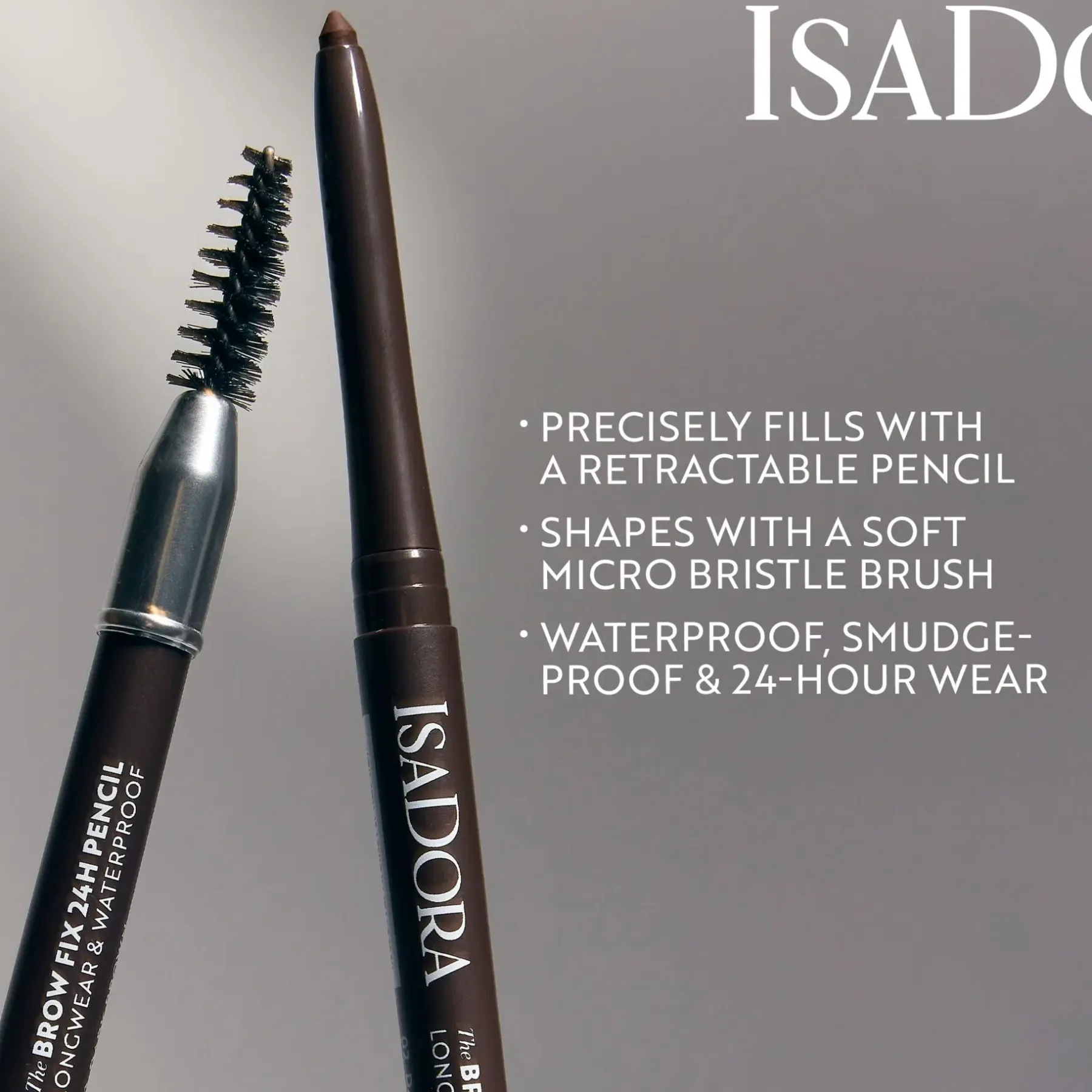 Etsitkö kulmien täyttämiseen, kiinnittämiseen ja muotoiluun koostumukseltaan luonnollista kulmakynää, joka kestäisi koko päivän? Ei huolta, meiltä se löytyy! Brow Fix 24H Pencil sisältää sisäänvedettävän kynän nopeaan ja tarkkaan täyttämiseen ja pehmeän, mikroharjaksisen harjan, jolla häivytät ja muotoilet kulmasi helposti. Koostumus sisältää luonnollisia vahoja, teevahaa ja auringonkukkaöljyä, jotka helpottavat tuotteen levittämistä. Tuote kestää jopa 24 tuntia ja on vedenkestävä, jotta kulmasi pysyvät kunnossa aikaisesta aamusta myöhään yöhön. Kynää on saatavilla neljässä sävyssä, ja se antaa mattapintaisen, luonnollisen näköisen lopputuloksen.
