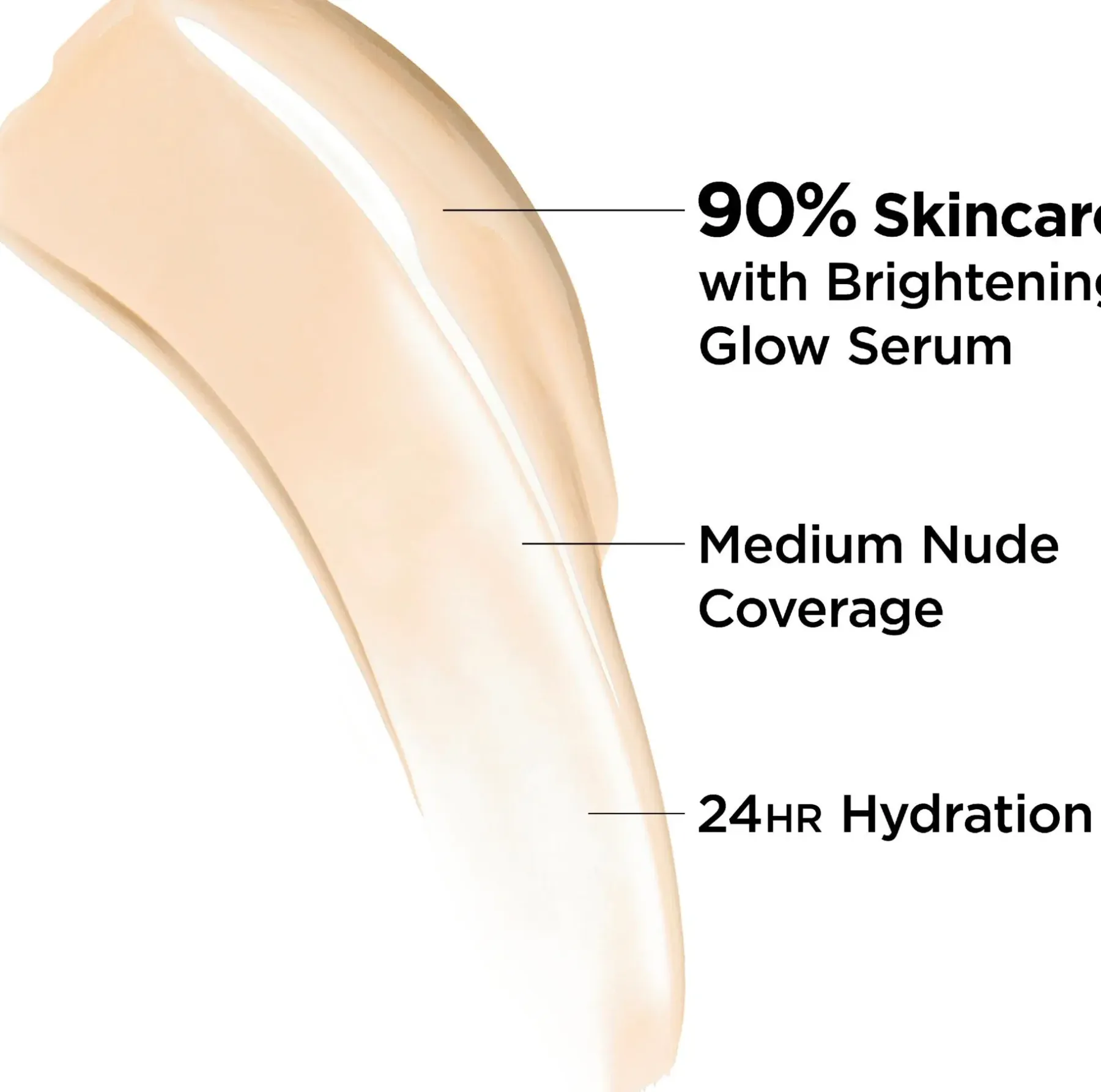 Keskipeittävä meikkivoide, joka sisältää hehkua tuovaa ja kirkastavaa seerumia. Kosteuttaa ihoa 24 tunnin ajan. CC+ Nude Glow SPF 40 on ensimmäinen 90% ihonhoitotuote, joka tekee luonnollisen sävyisestä ihostasi näkyvästi kirkkaamman!