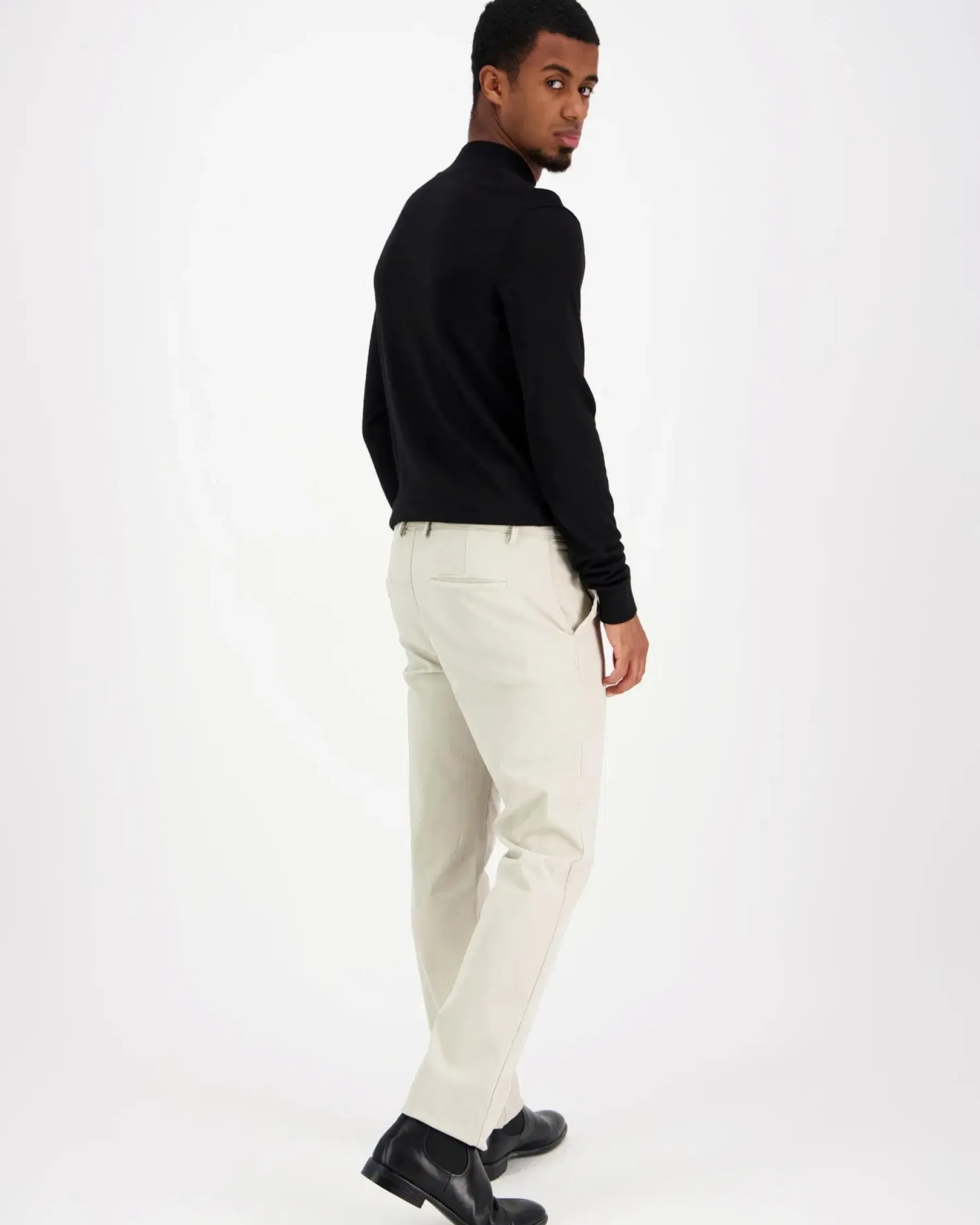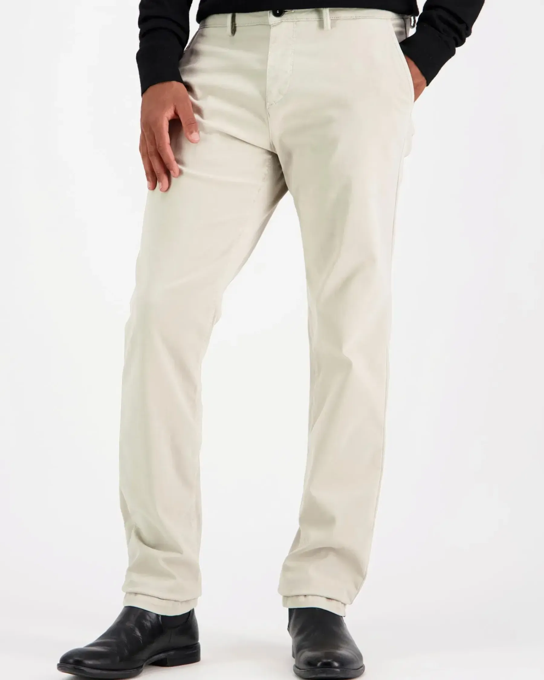 Tyylikkäät chinot ovat mukavan tuntuiset päällä joustavuutensa ja pehmeäksi harjatun pinnan ansiosta. Housuissa on edessä pystytaskut ja takana listataskut. Housut ovat malliltaan suoralahkeiset. Housuissa on käytetty puuvilla on BCI puuvillaa.