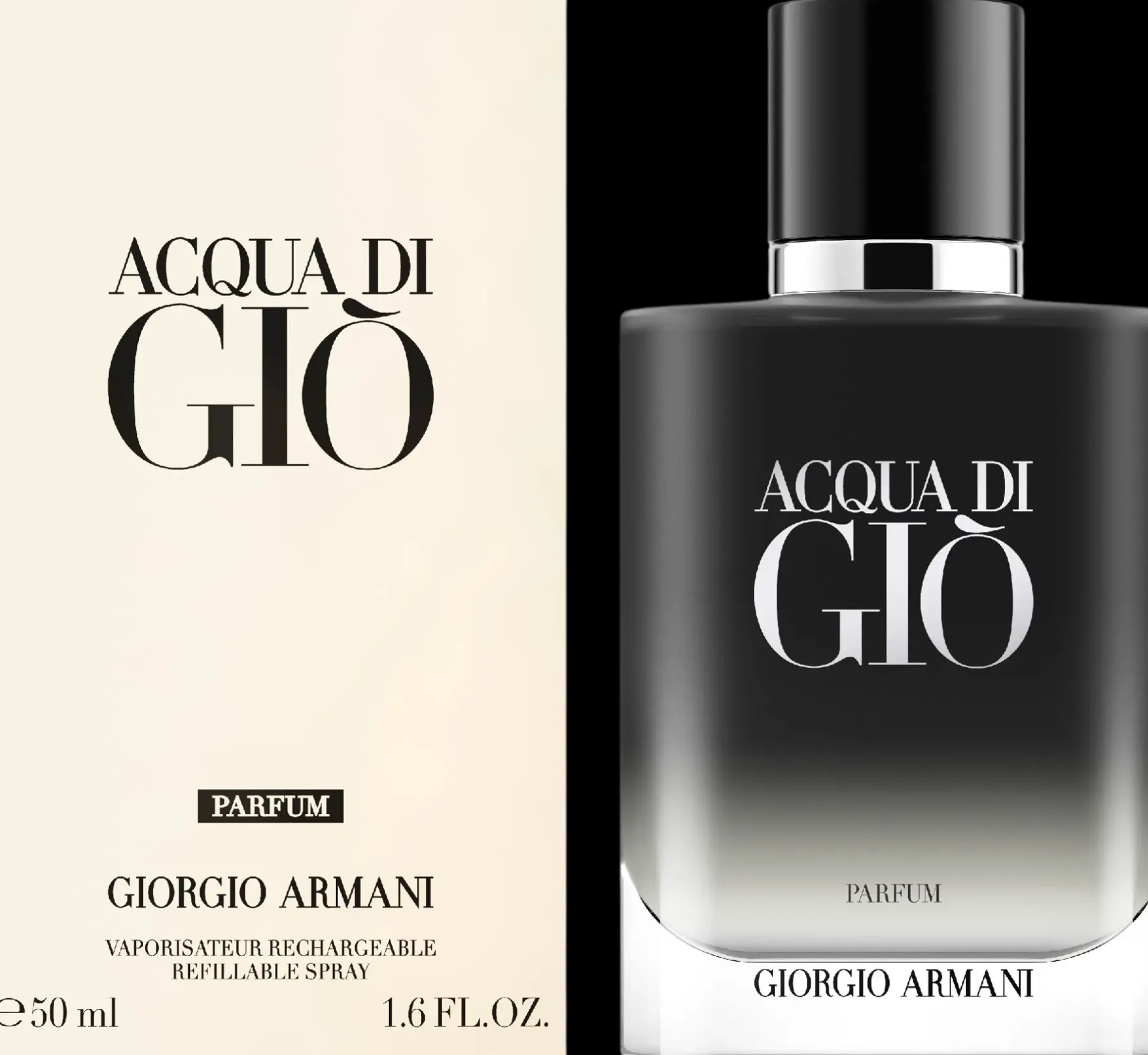 Giorgio Armanin Acqua di Giò Parfum: uusi syvä ja intensiivinen raikkaus, uudelleentäytettävä joka koossa. Acqua di Giò Parfum, erittäin koukuttava tuoksu.