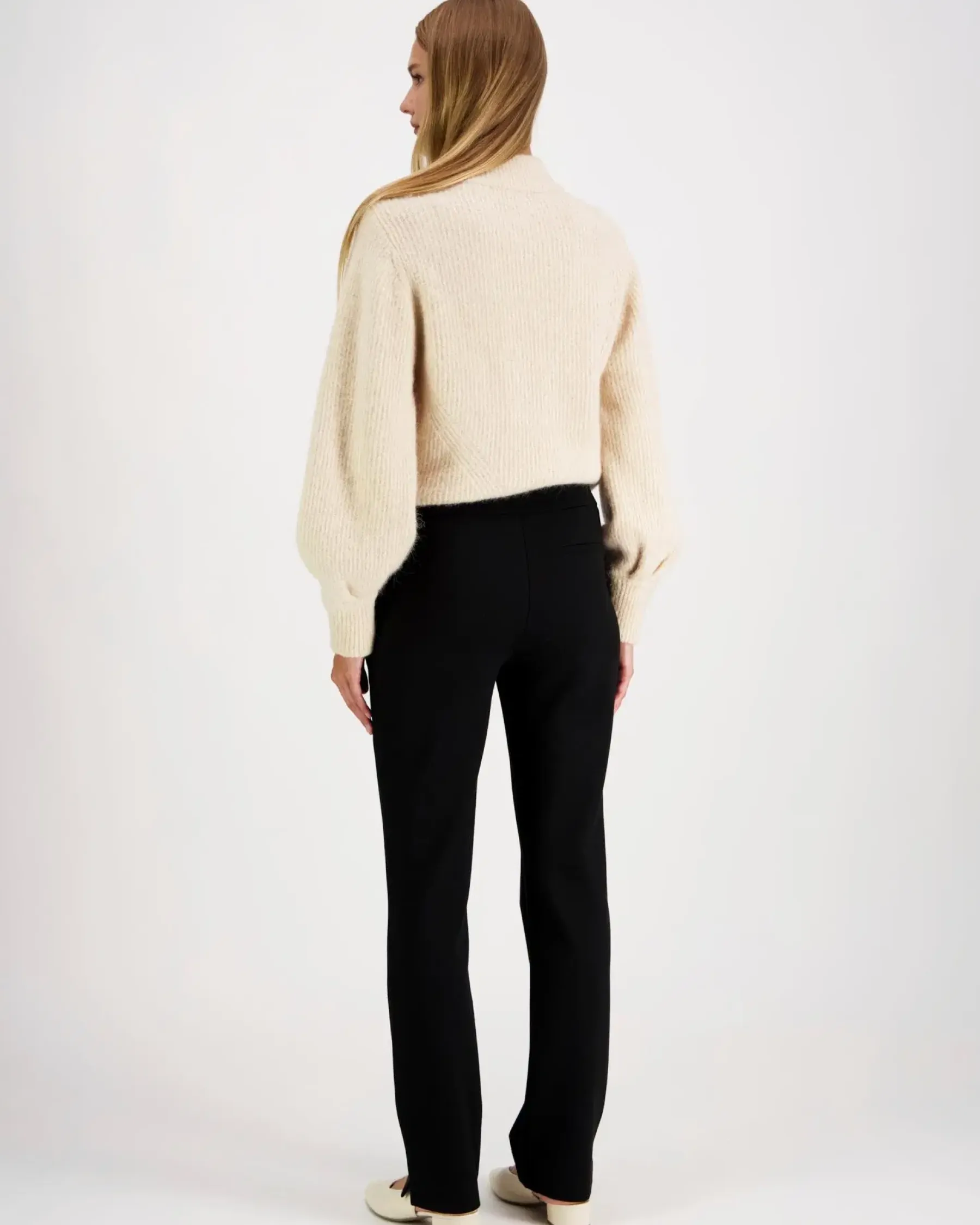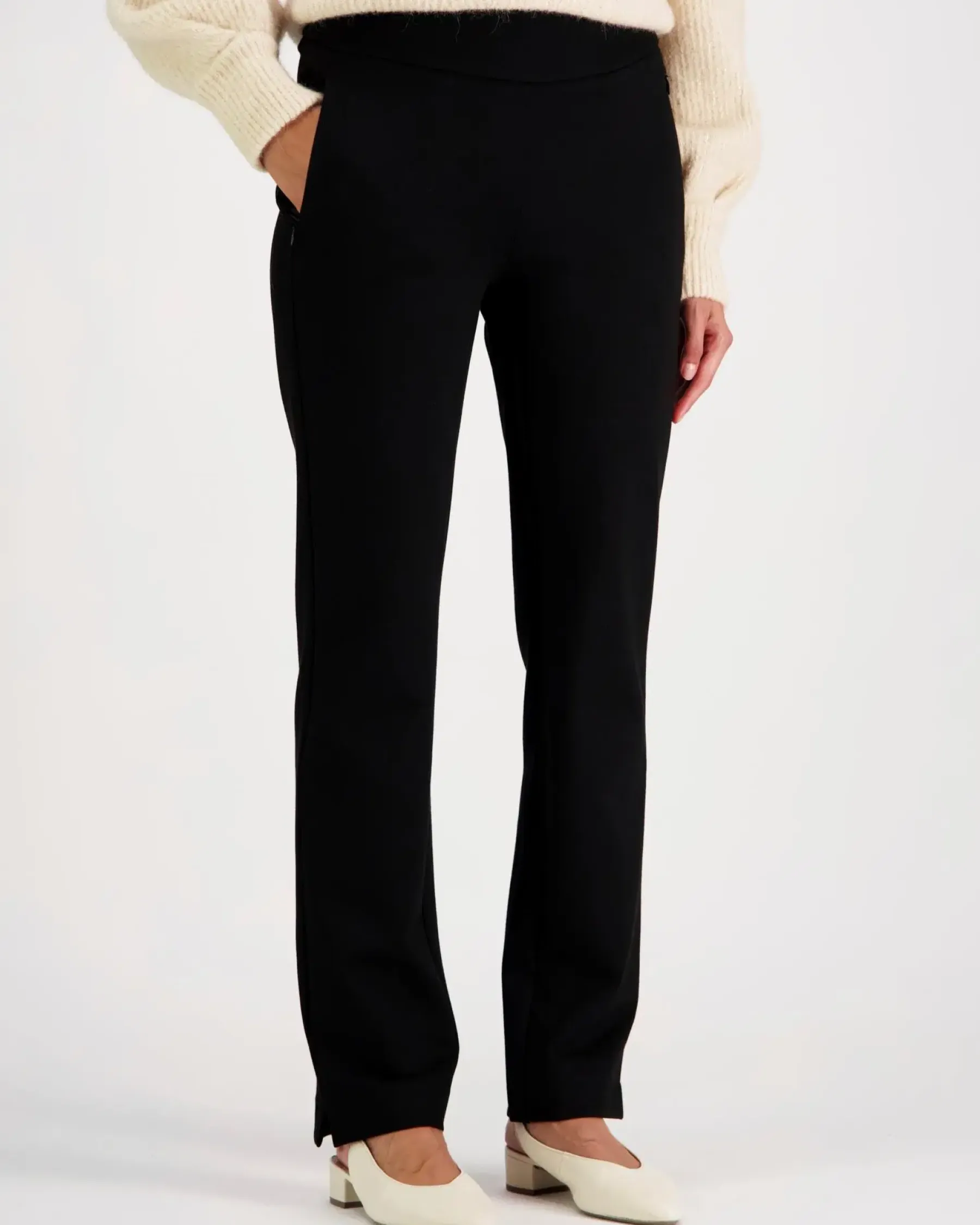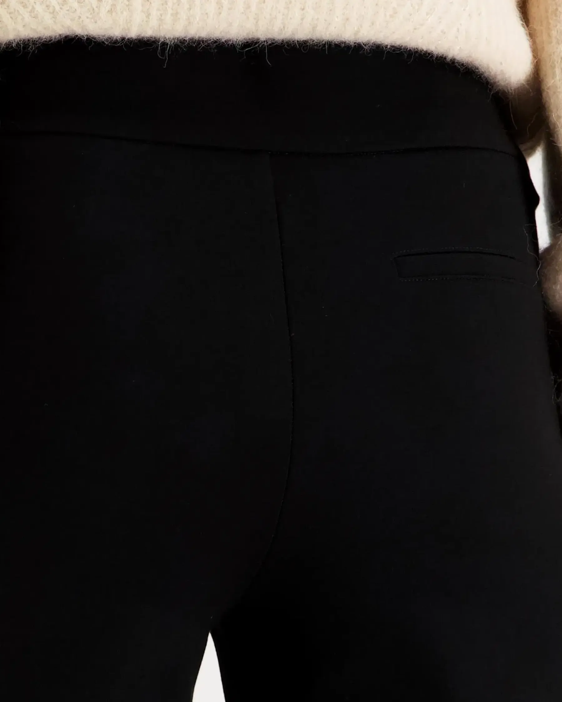 Ajattoman monikäyttöiset ja hyvin istuvat jerseyhousut joustavalla vyötärönauhalla. Vyötärön sivuilla taskut, joissa avattava piilovetoketju. Koossa 38 vyötärönympärys noin 76 cm, lantion ympärys noin 88 cm ja lahkeen sisäpituus haarasta lahkeensuuhun noin 76 cm. Materiaali laadukasta joustavaa jerseyneulosta.