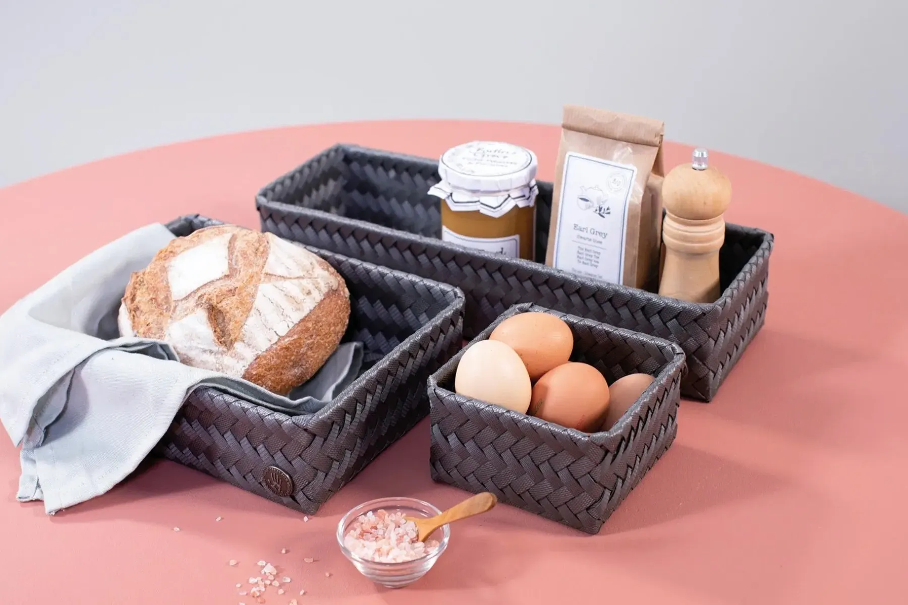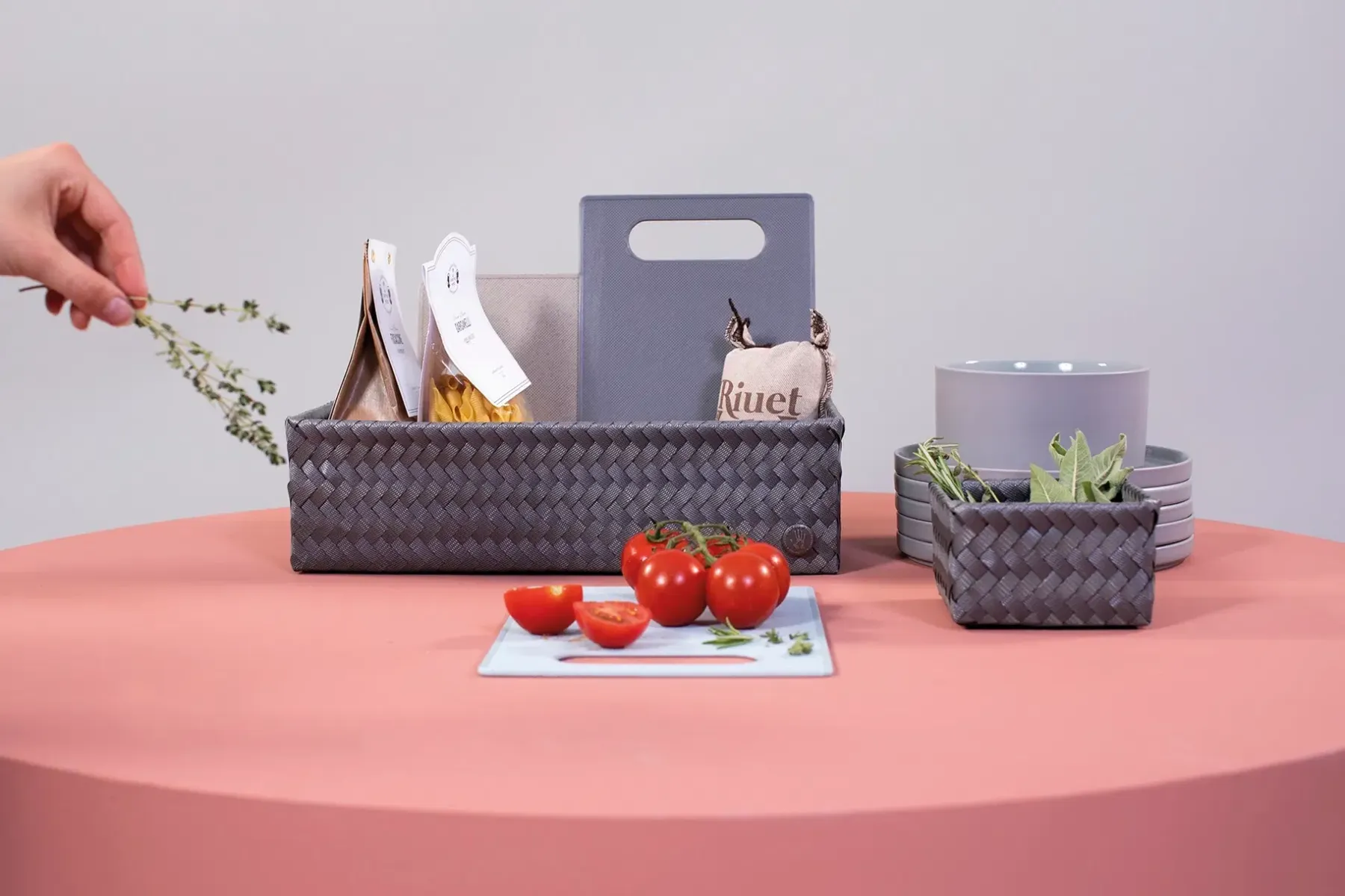 Handed By kierrätysmuovinen neliö minikori tumman harmaa 7 x 12 x 12 cm. Kierrätysmuovista vastuullisesti valmistettu Handed By rasia sopii kodin piensäilytykseen. Rasia on kaunis pitää esillä, jotta tavarat ovat kätevästi saatavilla. Sarjan tuotteet sopivat väreiltään ihanasti yhteen