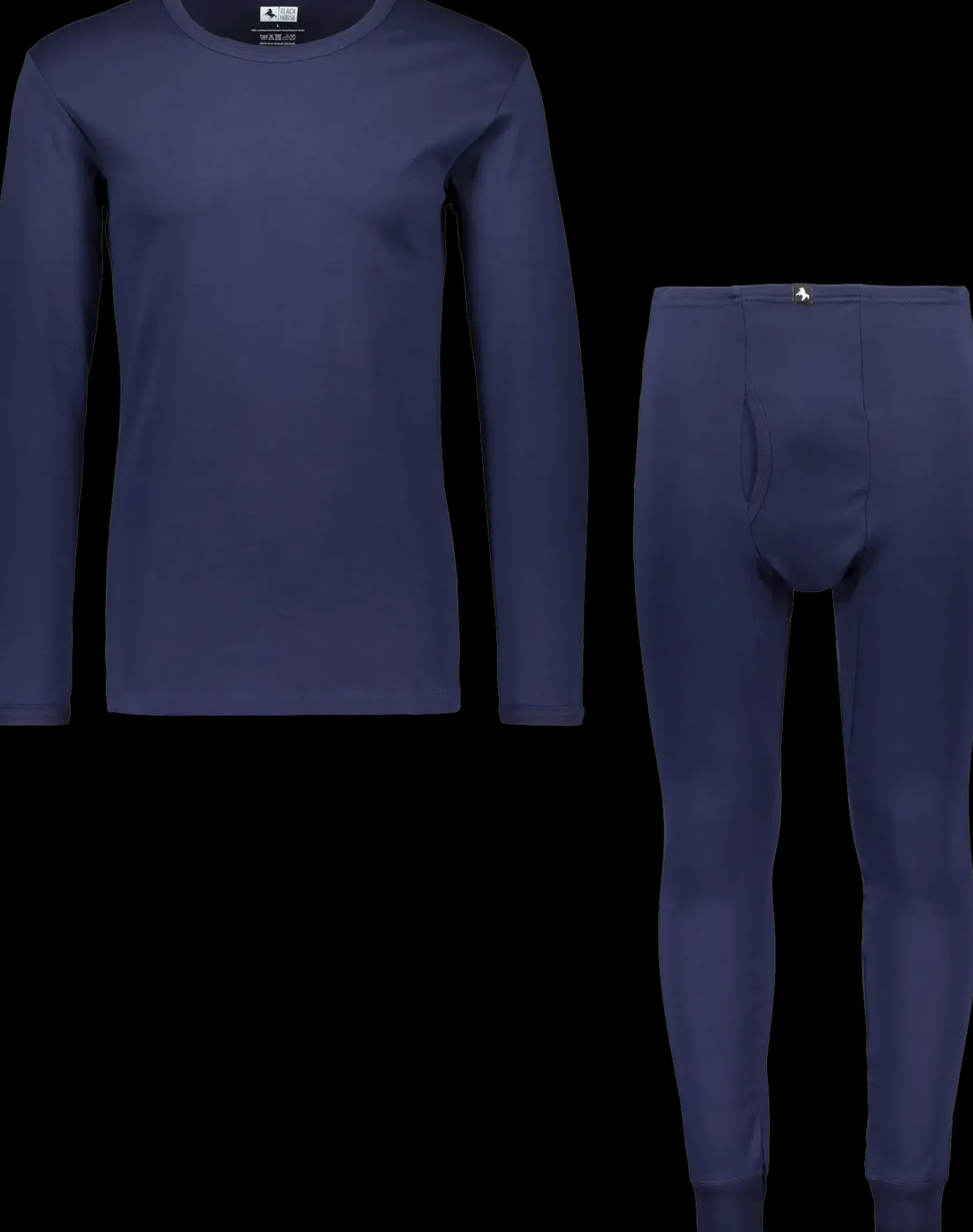 Black Horsen miesten kerrasto. Valmistettu joustavasta interlock-neuloksesta, jonka ansiosta kerrasto on erityisen pehmeä ja mukava päällä. Paidassa on O-aukollinen pääntie. Aukollisten alushousujen vyötärökuminauha kuminauhakujassa. Housujen täyspitkissä lahkeissa on resorit. Ei hiertäviä tai kutittavia pesulappuja – vain täydellinen mukavuus. Materiaali on miellyttävää sata prosenttista BCI-puuvillaa.