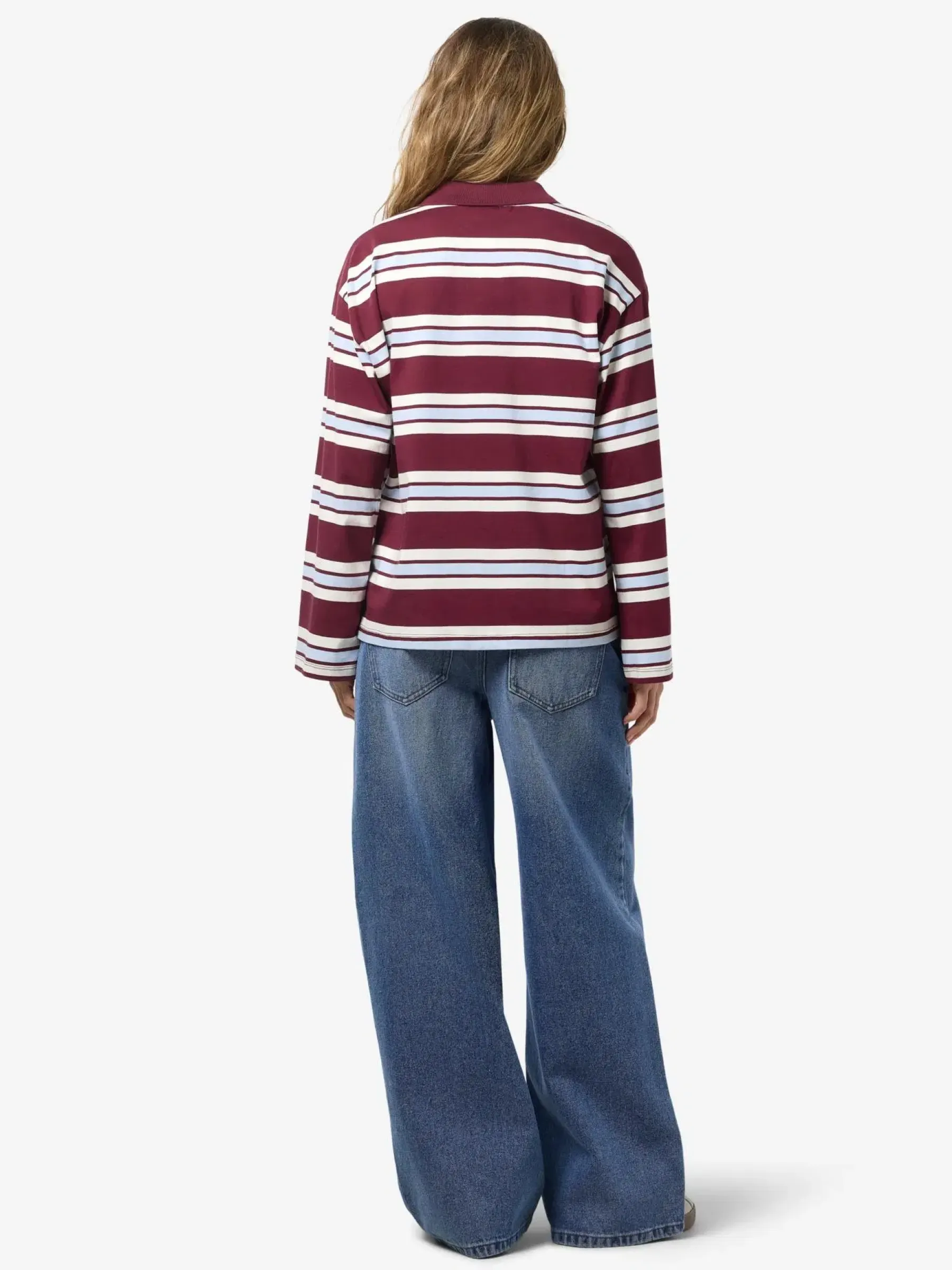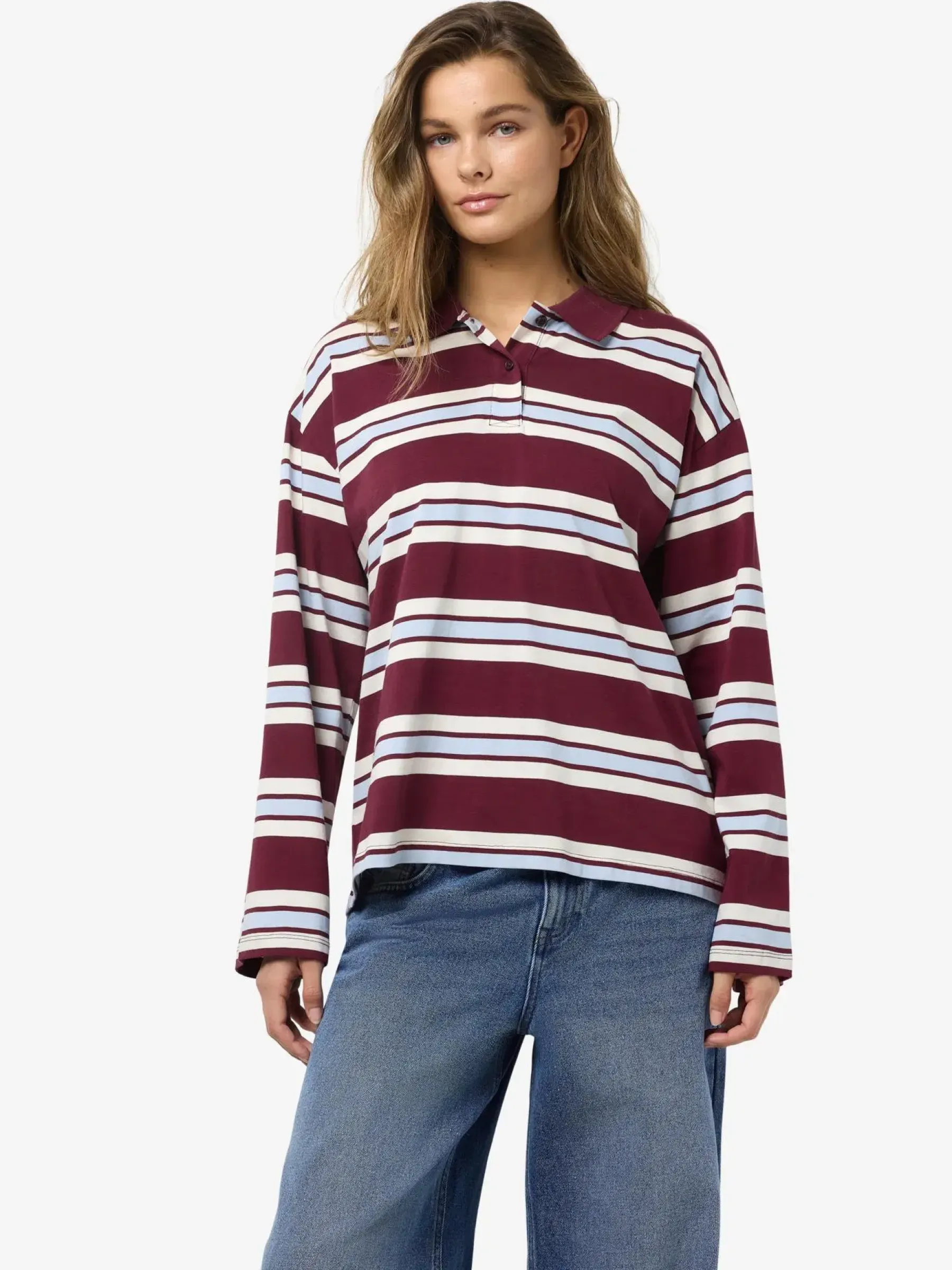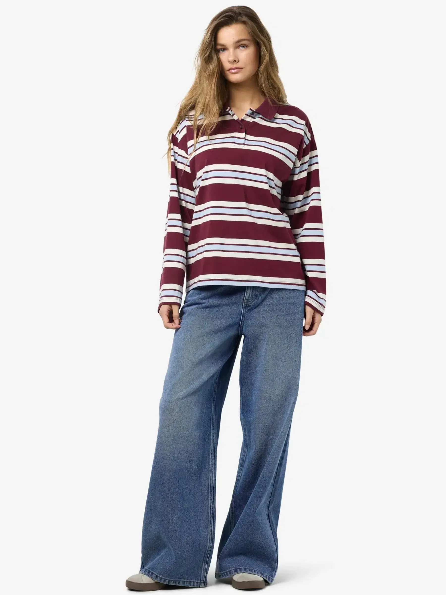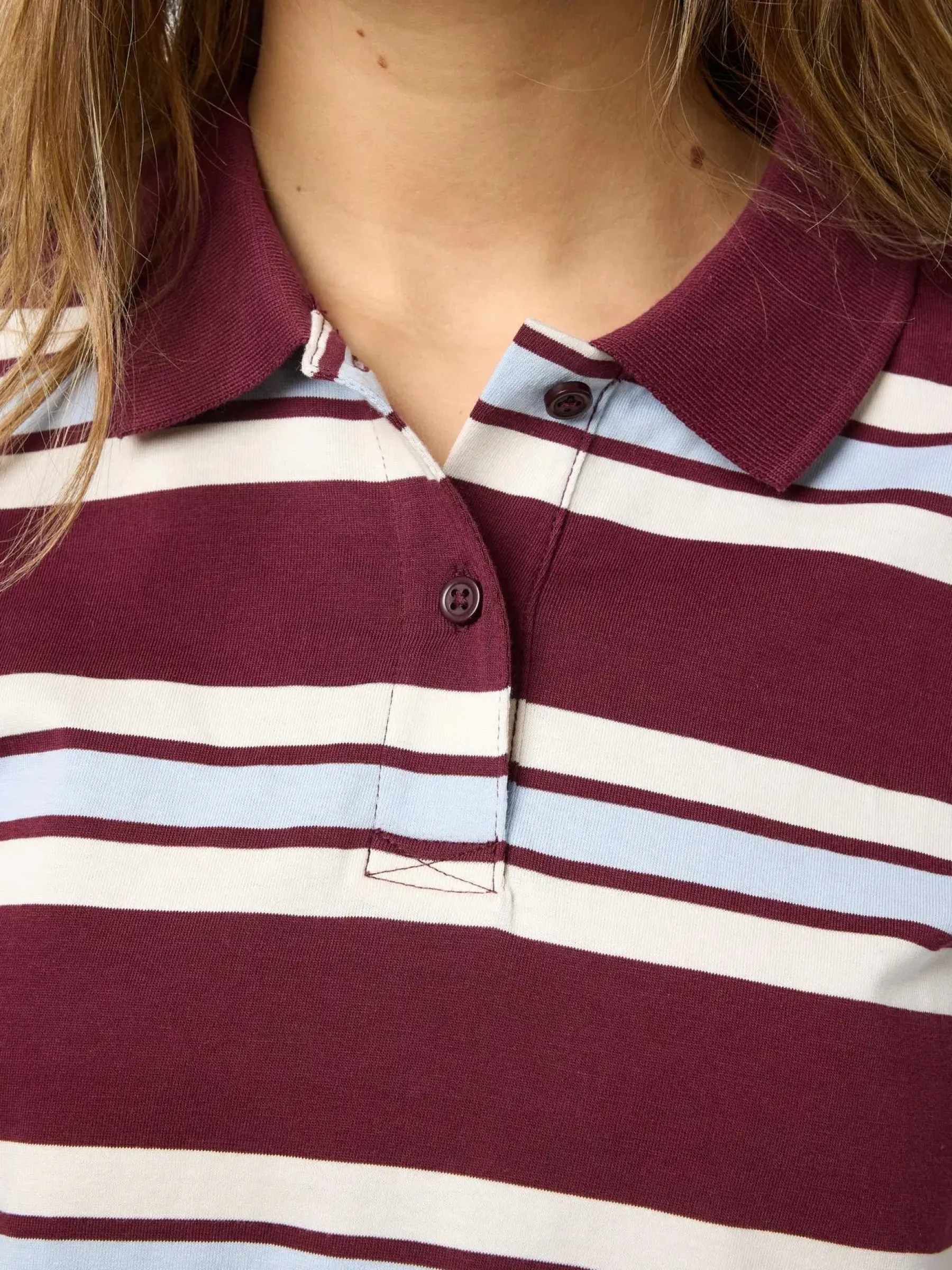 Trendikäs raidallinen poolopaita, yhdistä mustien suorien housujen, suorien farkkujen tai lyhyen hameen ja tennareiden kanssa.