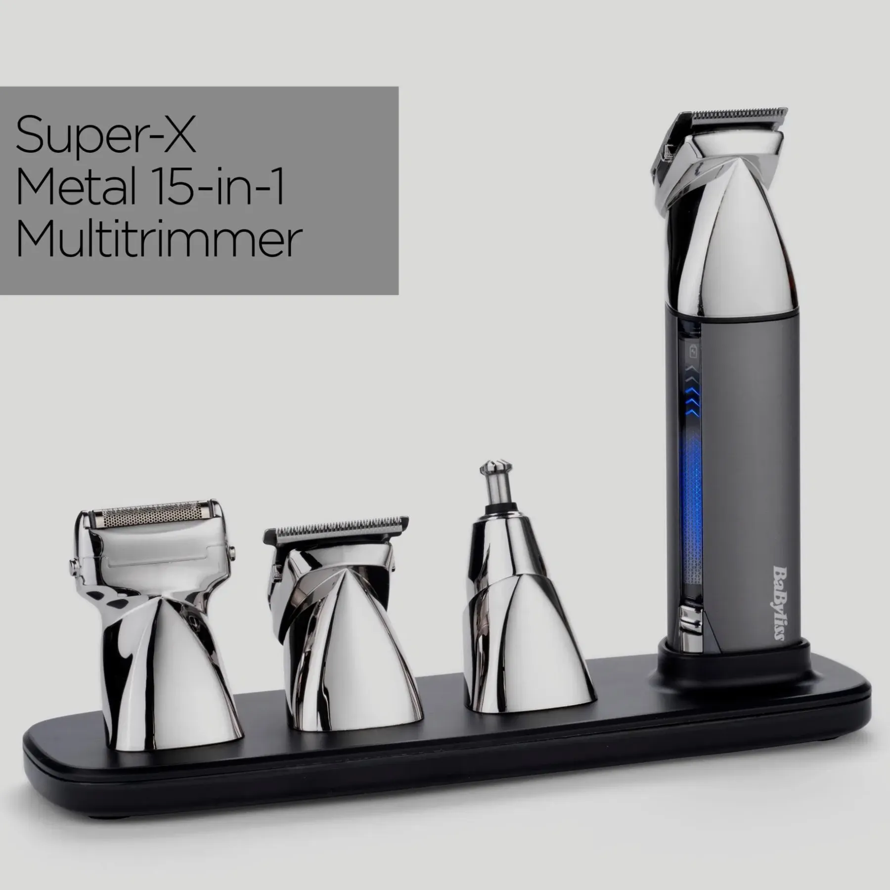 BaByliss Super-X Metal Series multitrimmeri sopii monipuolisuutensa ansiosta erinomaisesti oman tyylisi muotoiluun sekä koko kehon siistimiseen. Ammattitason langattoman multitrimmerin tukeva metallinen kädensija ja erinomainen laatu on suunniteltu ensiluokkaiseen ja pitkäaikaiseen käyttöön.