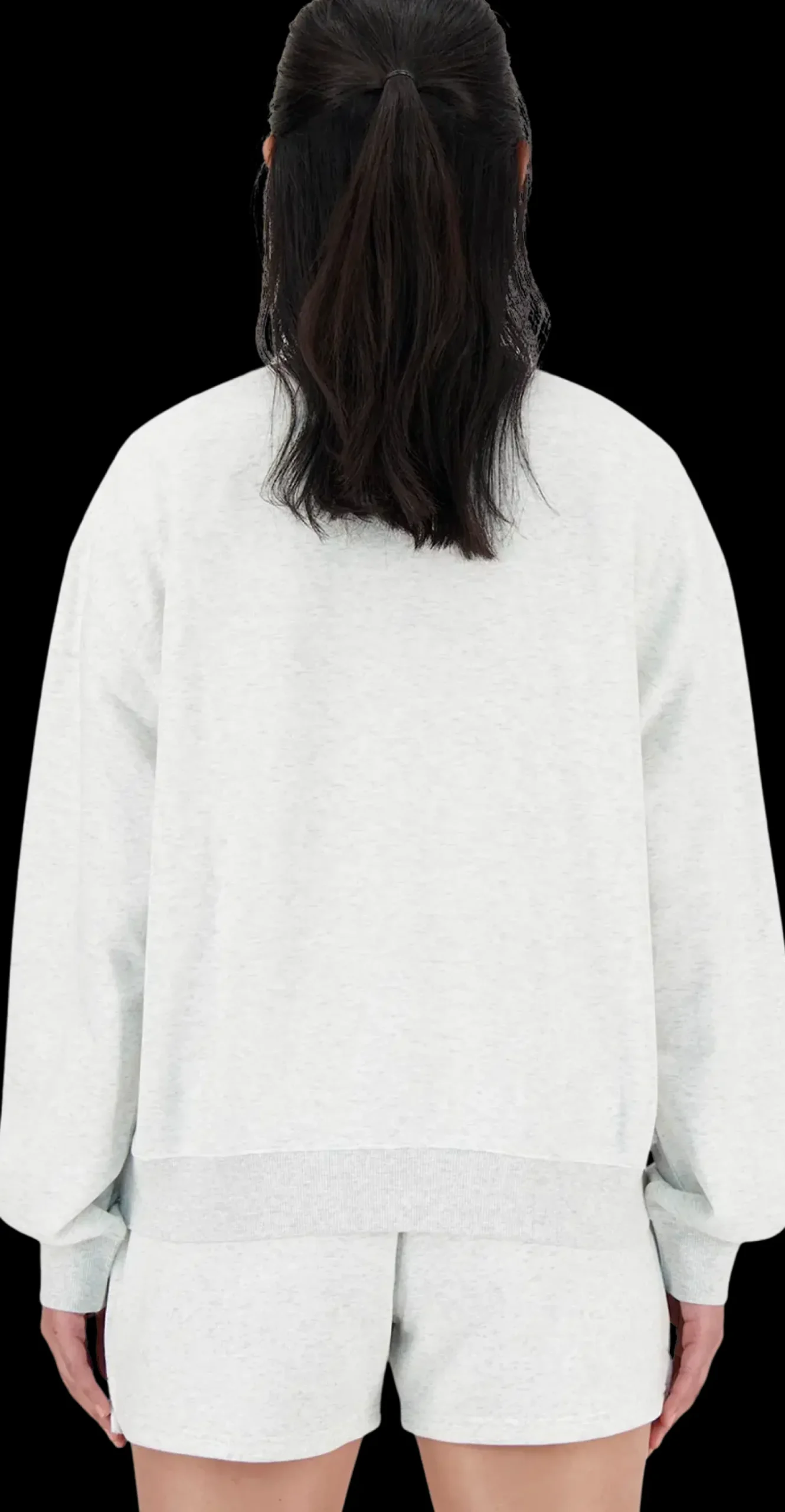 Collegepusero jossa o-pääntie, materiaalissa 40% kierrätettyä polyetseriä. Pieni logo edessä.