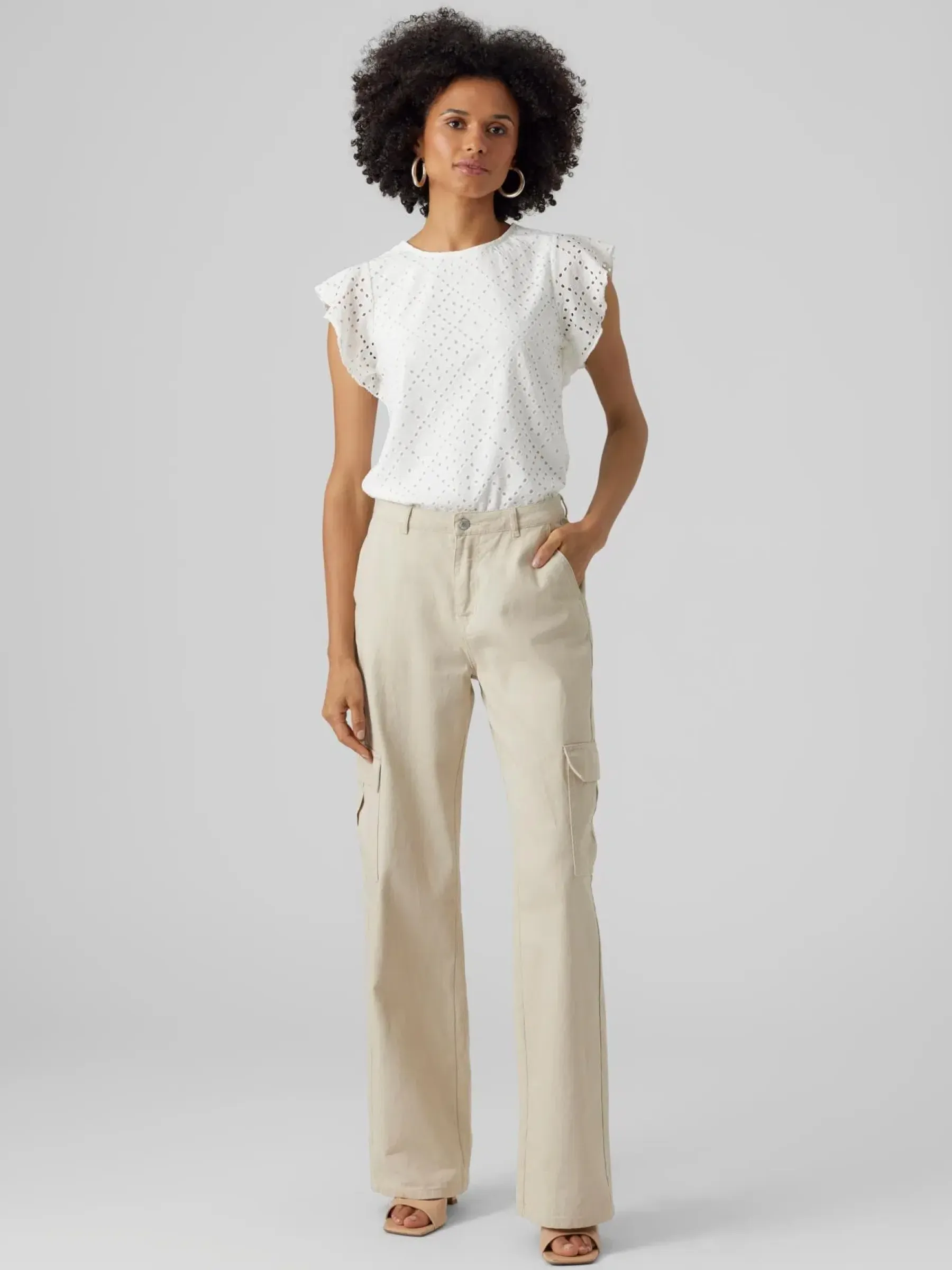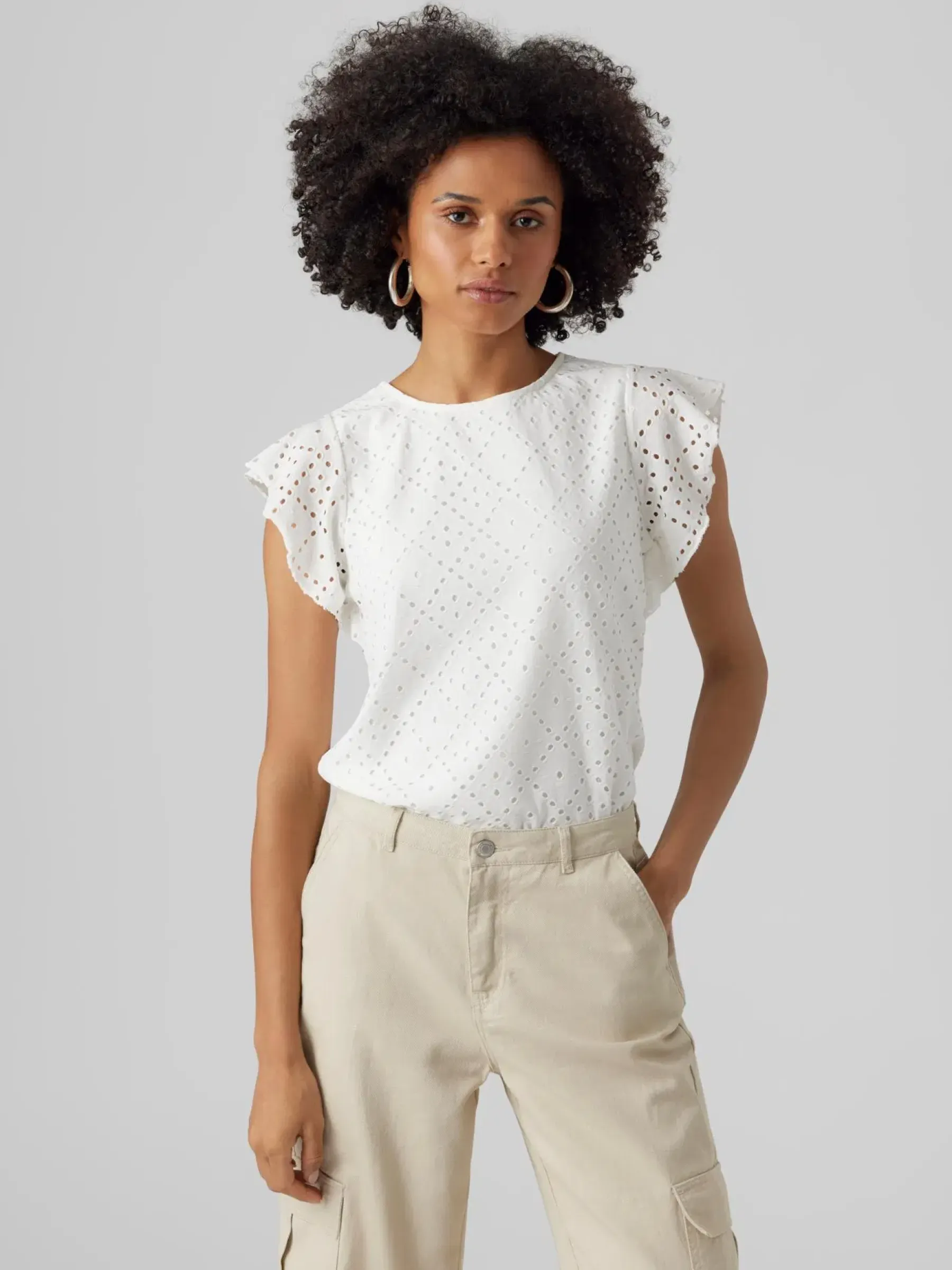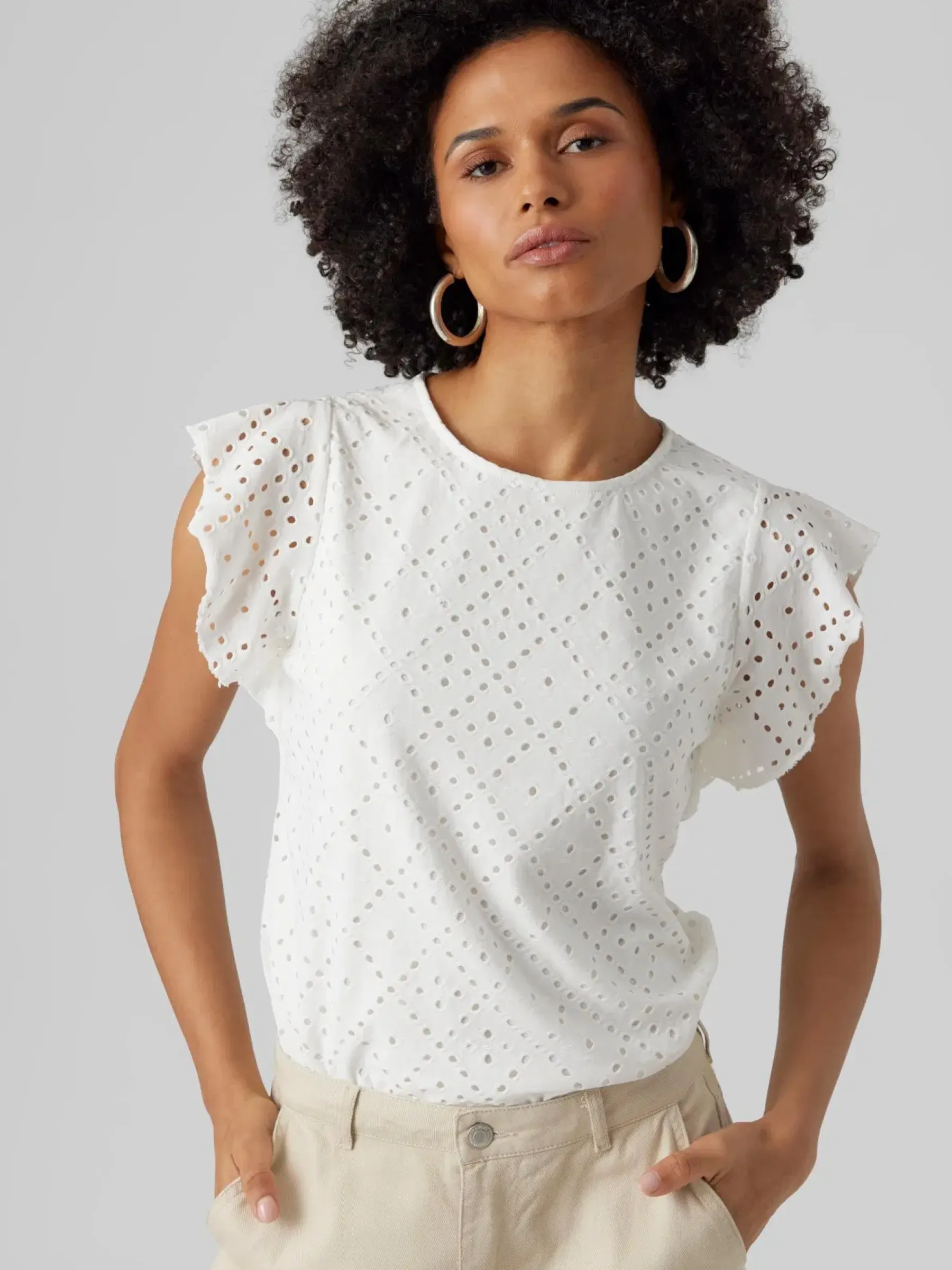 Jerseytoppi broderieanglaise-tyylisellä pitsikuvioinnilla.