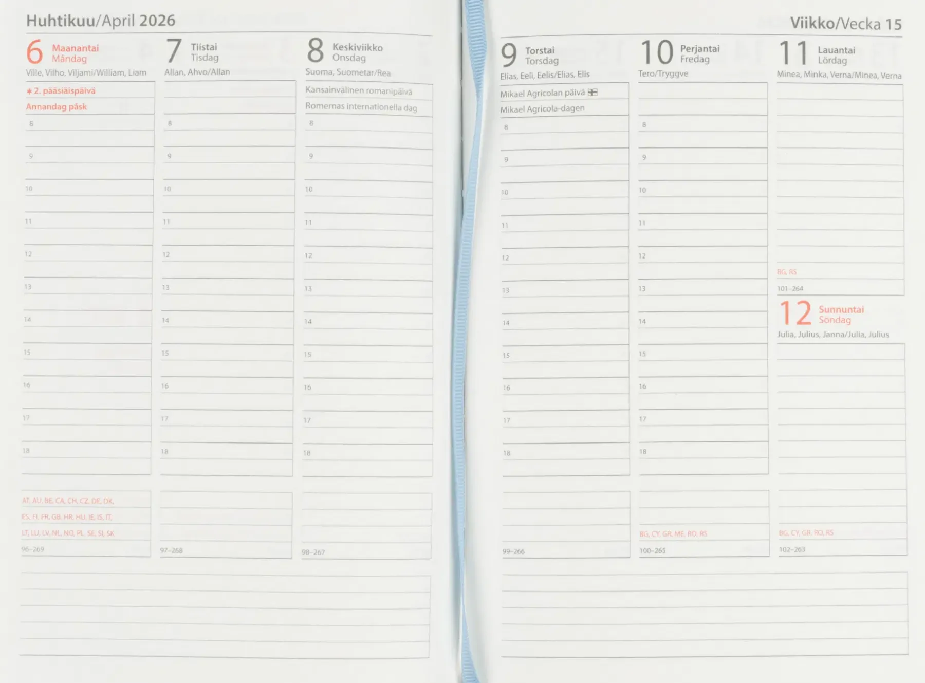 A5-kokoinen pöytäkalenteri on täydellinen apuväline arjen suunnitteluun. Tämä kovakantinen kalenteri on kooltaan 14 x 20 cm, ja siinä on 96 sivua, joten tilaa on runsaasti muistiinpanoille ja merkinnöille. Käytännöllinen kirjanmerkkinauha auttaa pitämään tärkeät päivämäärät ja muistiinpanot helposti saatavilla.