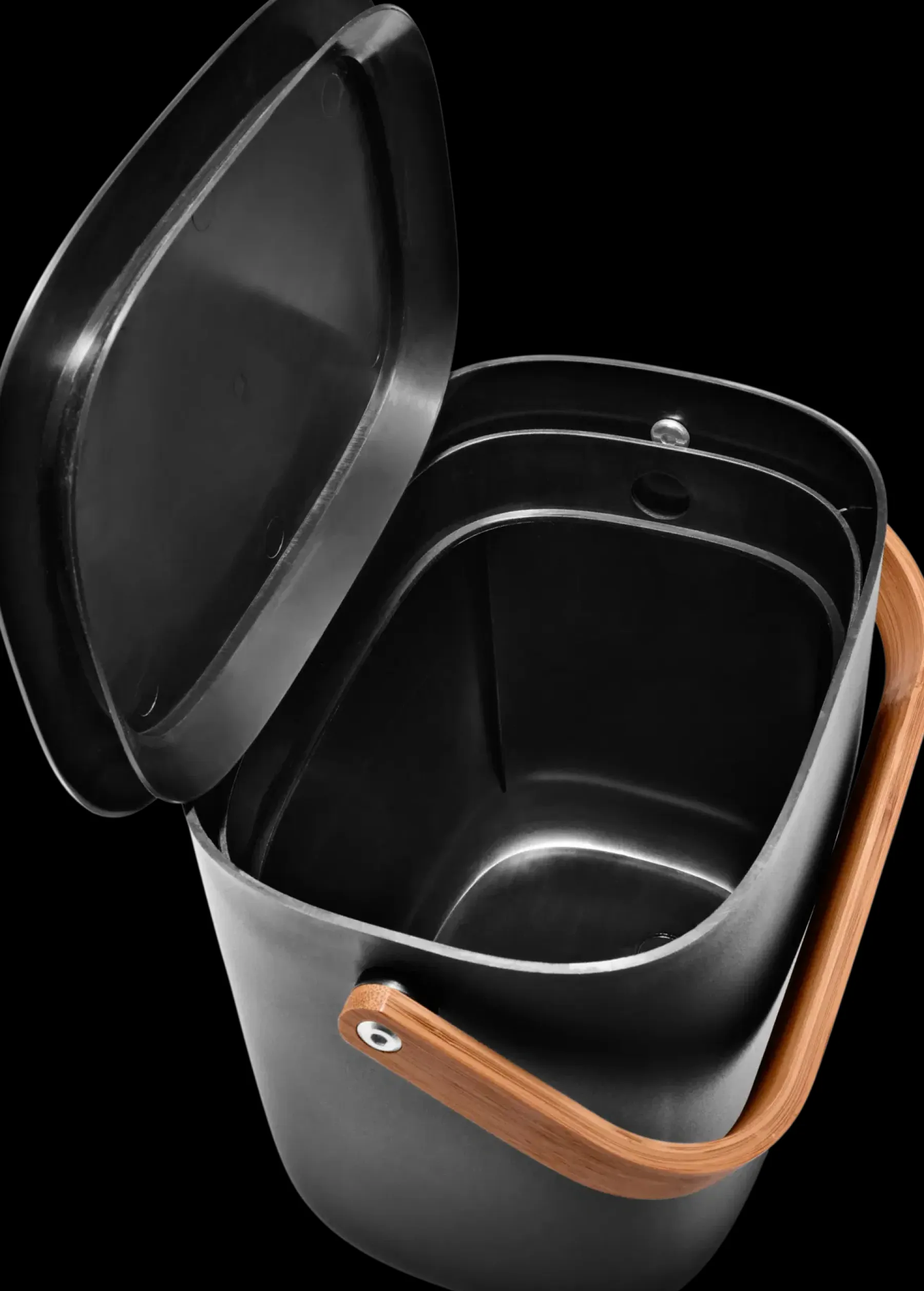 Reflect-jäteastiat ovat esteettisesti miellyttävä ja käytännöllinen ratkaisu jätteiden lajitteluun. Astia on valmistettu mustasta kierrätysmuovista, jonka parina bambupuinen kahva on kaunis yksityiskohta. Kannessa on kätevä mekanismi, jonka ansiosta se pysyy tarvittaessa auki itsestään. Sisäosan pussipidike sopii monen kokoisille pusseille. Erikseen myytävien kiinnikkeiden avulla Reflect-jäteastiat on mahdollista asentaa myös seinälle.