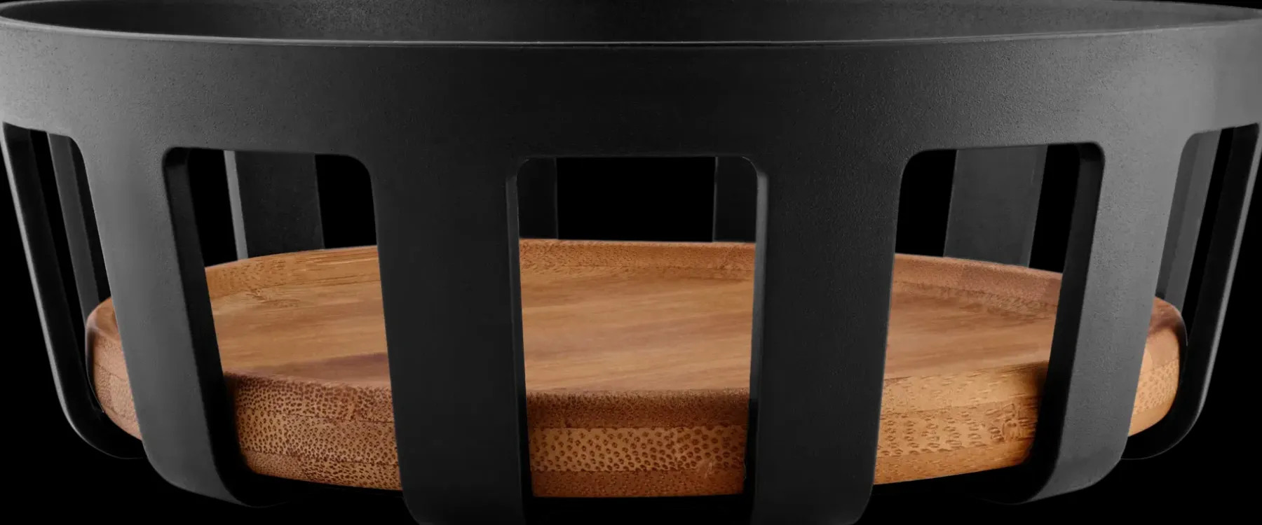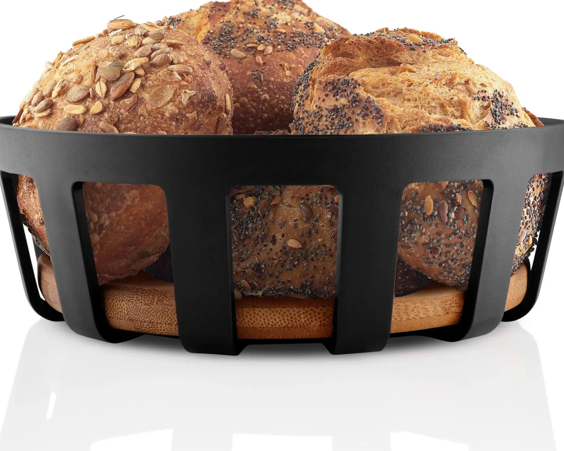 Upeassa Nordic Kitchen -leipäkorissa toistuu sarjan tuotteille ominainen mattamustan ja lämminsävyisen puun yhdistelmä. Tuoreilla sämpylöillä täytettynä leipäkori on aamiais- tai brunssipöydän katseenvangitsija, mutta se sopii erinomaisesti myös esimerkiksi hedelmäkoriksi. Leipäkori on helppo puhdistaa kostealla liinalla pyyhkimällä. Bambusta valmistettu pohja pysyy kauniina, kun se öljytään säännöllisesti.